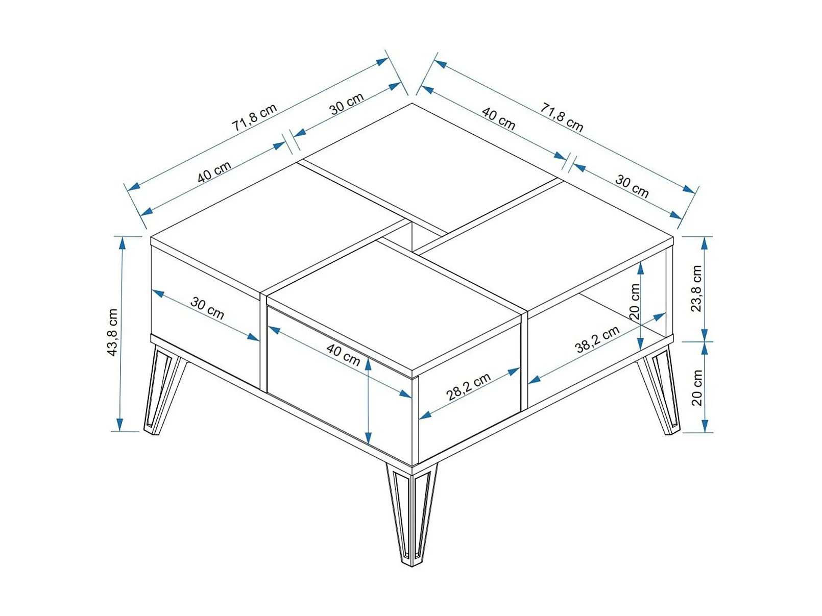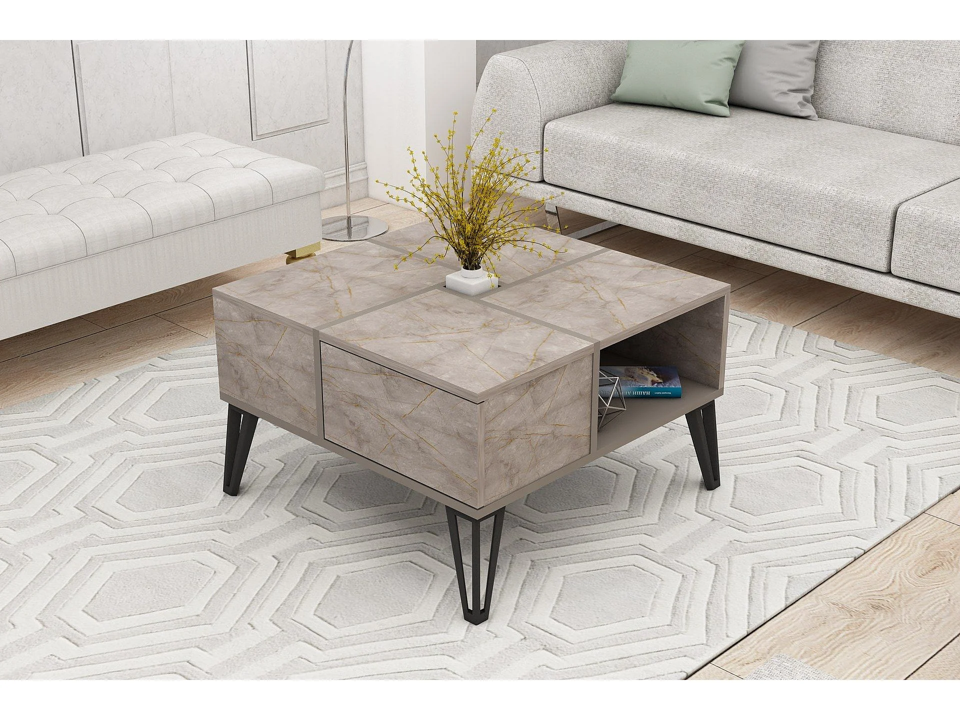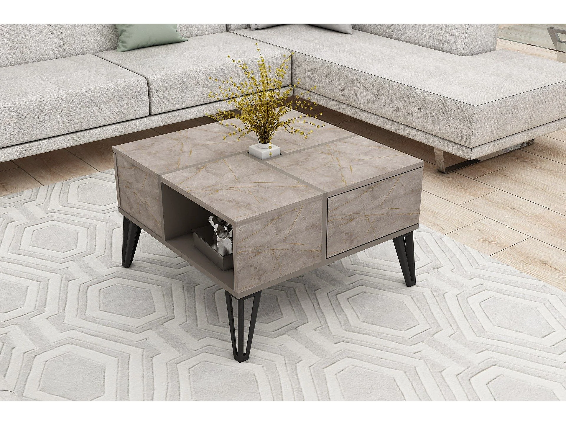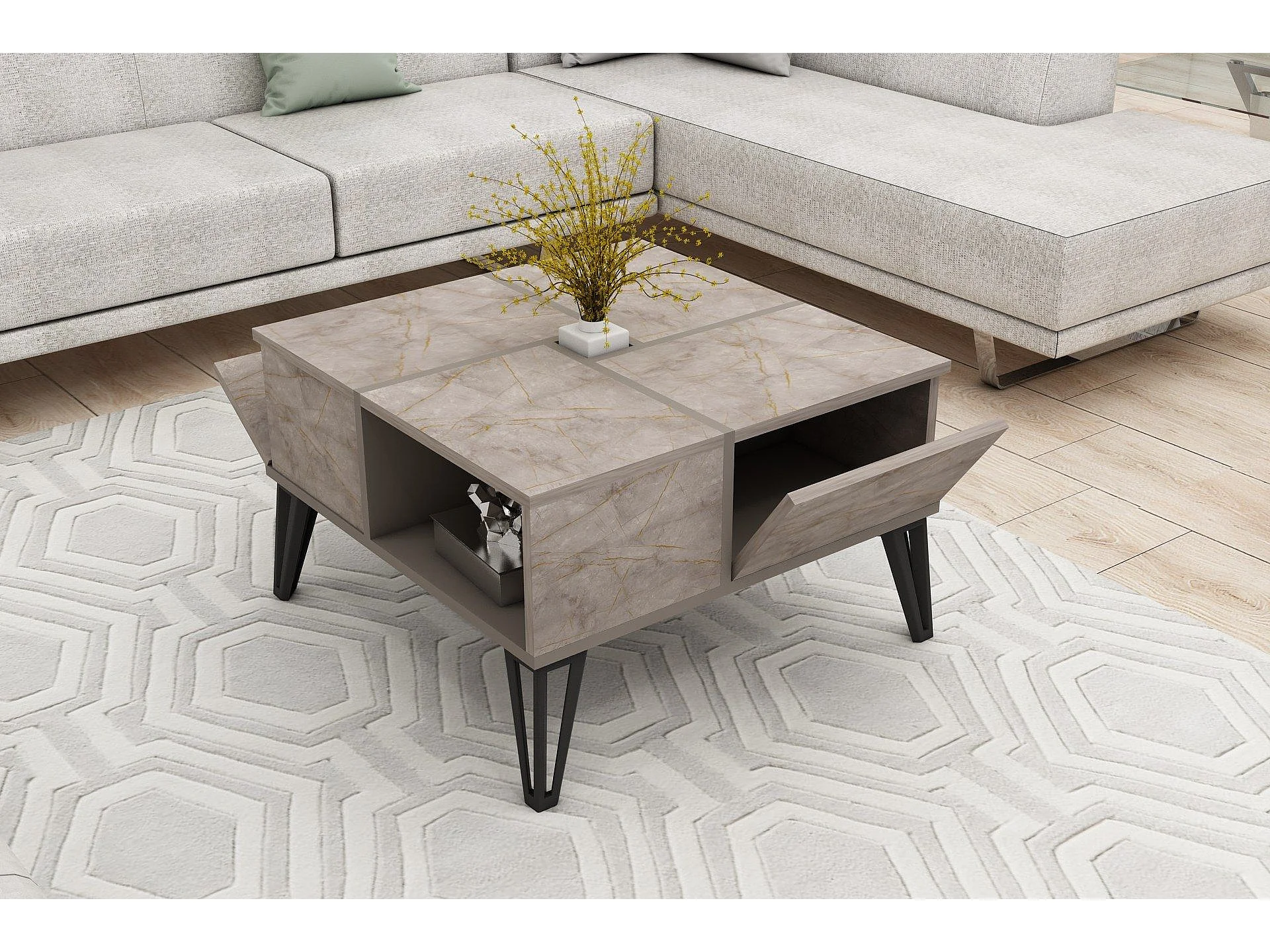 Table basse carrée avec rangement Equinox Bois Marron clair effet marbre