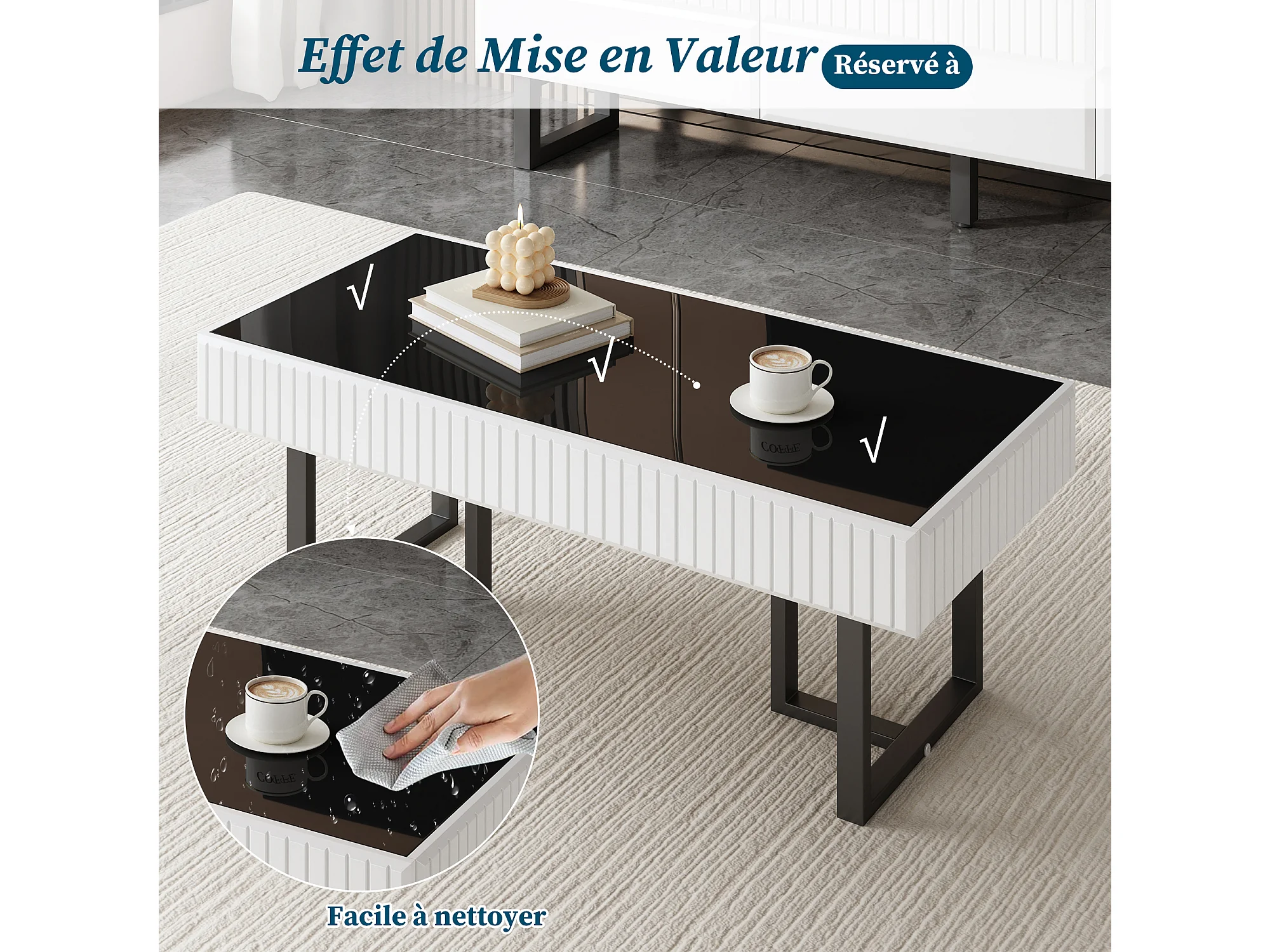 Table basse classique moderne - 110 x 50.5 x 41 cm - table de salon - plateau brillant - MDF + aggloméré - blanc + noir