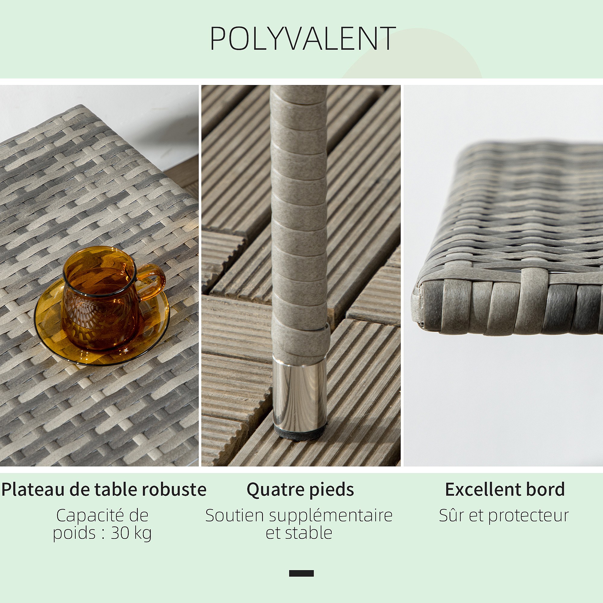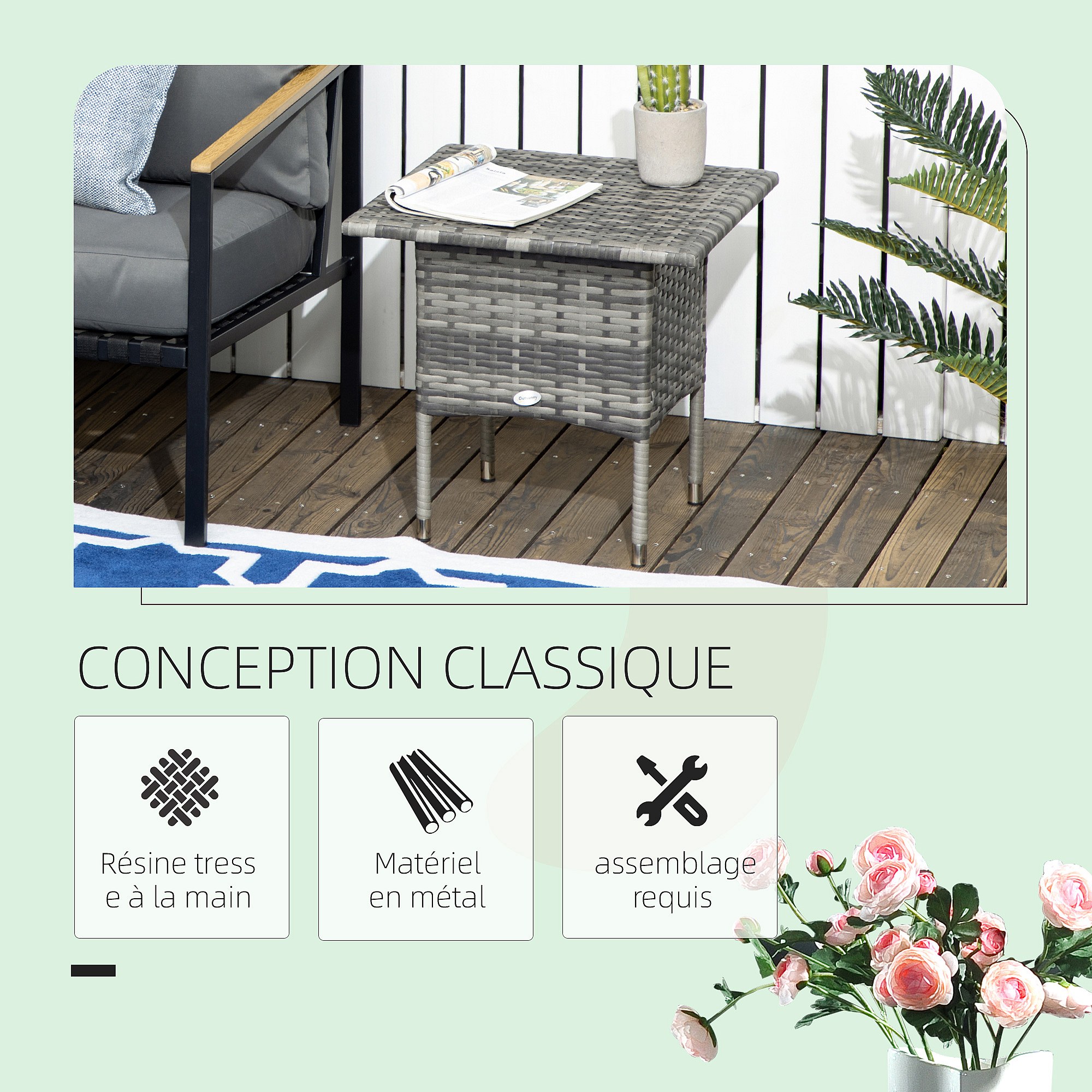 Table basse de jardin style cosy chic dim. 50L x 50l x 47H cm métal époxy résine tressée aspect rotin gris