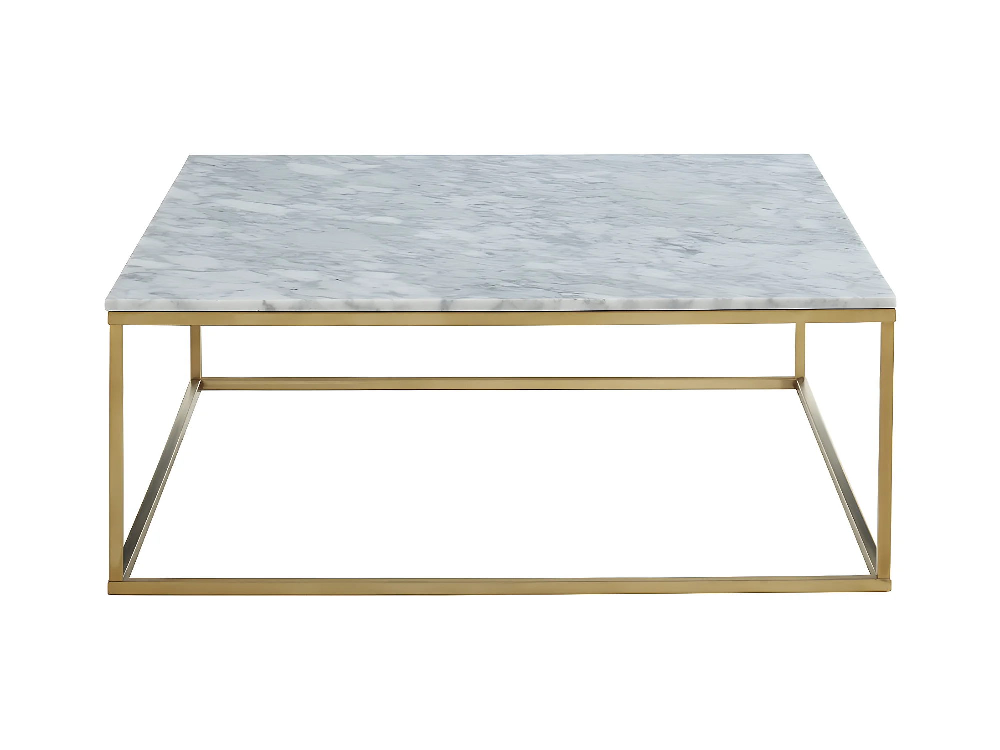 Table basse design ARETHA de Pascal MORABITO - Marbre et Métal - Blanc et Doré
