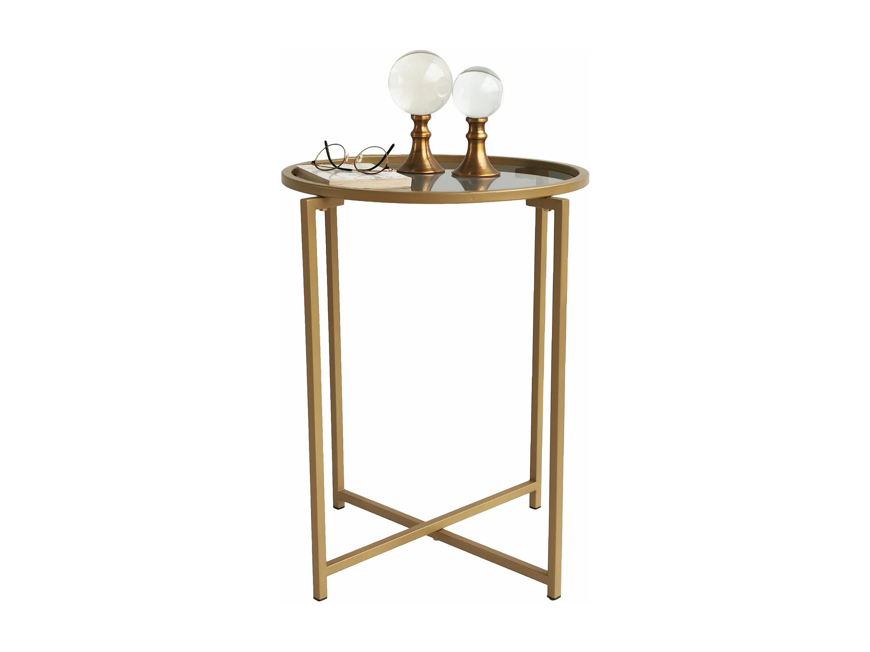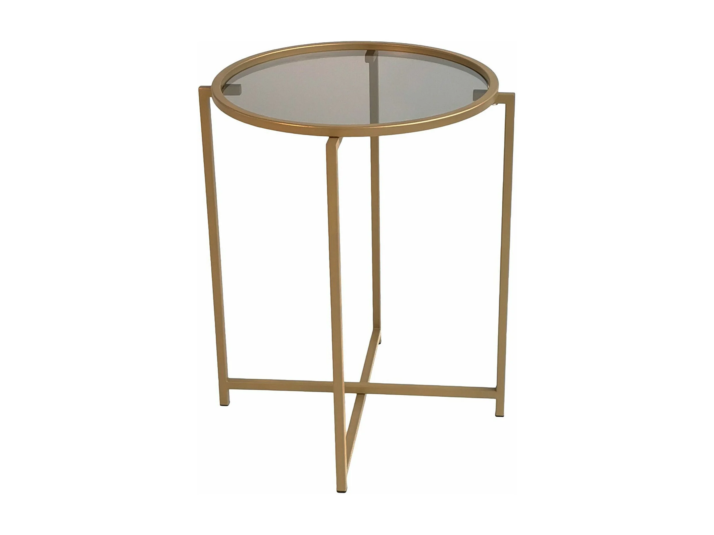 Table basse Extrahere Ø50x60cm Métal Or et Verre Trempé Fumé
