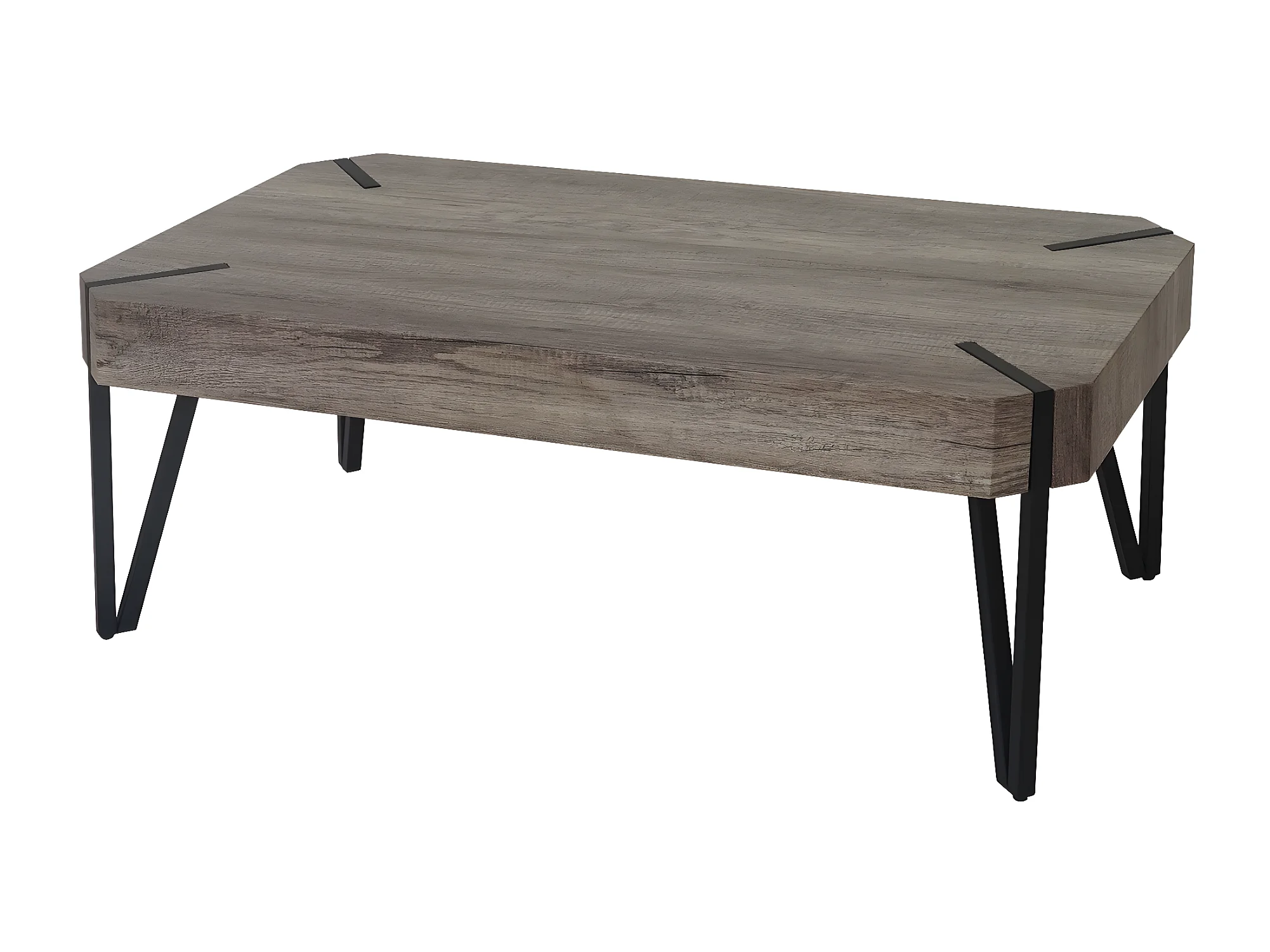 Table basse Genk T573, chêne sauvage, pieds métalliques foncés