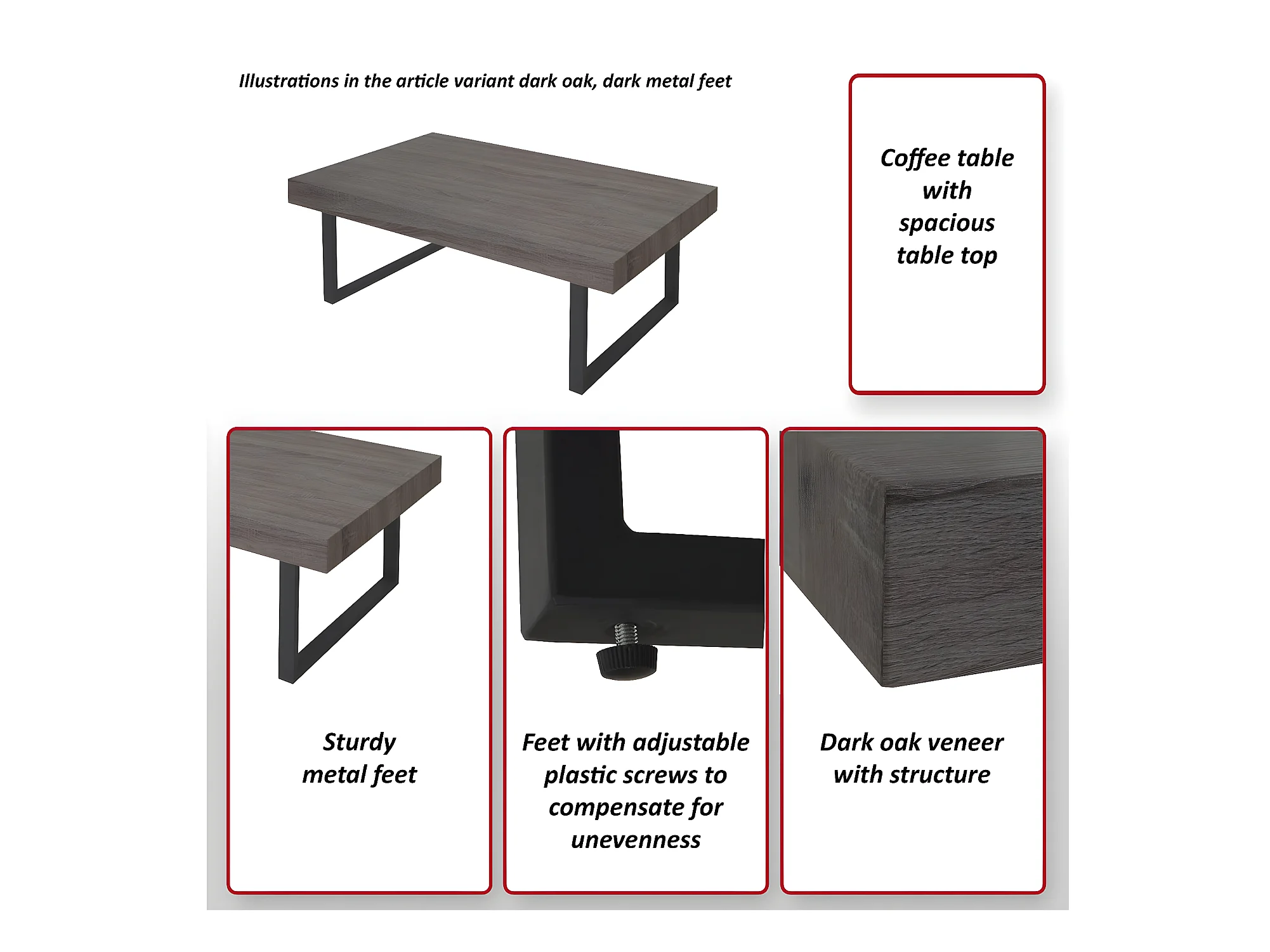 Table basse Genk T576, sonoma noir, pieds métalliques foncés
