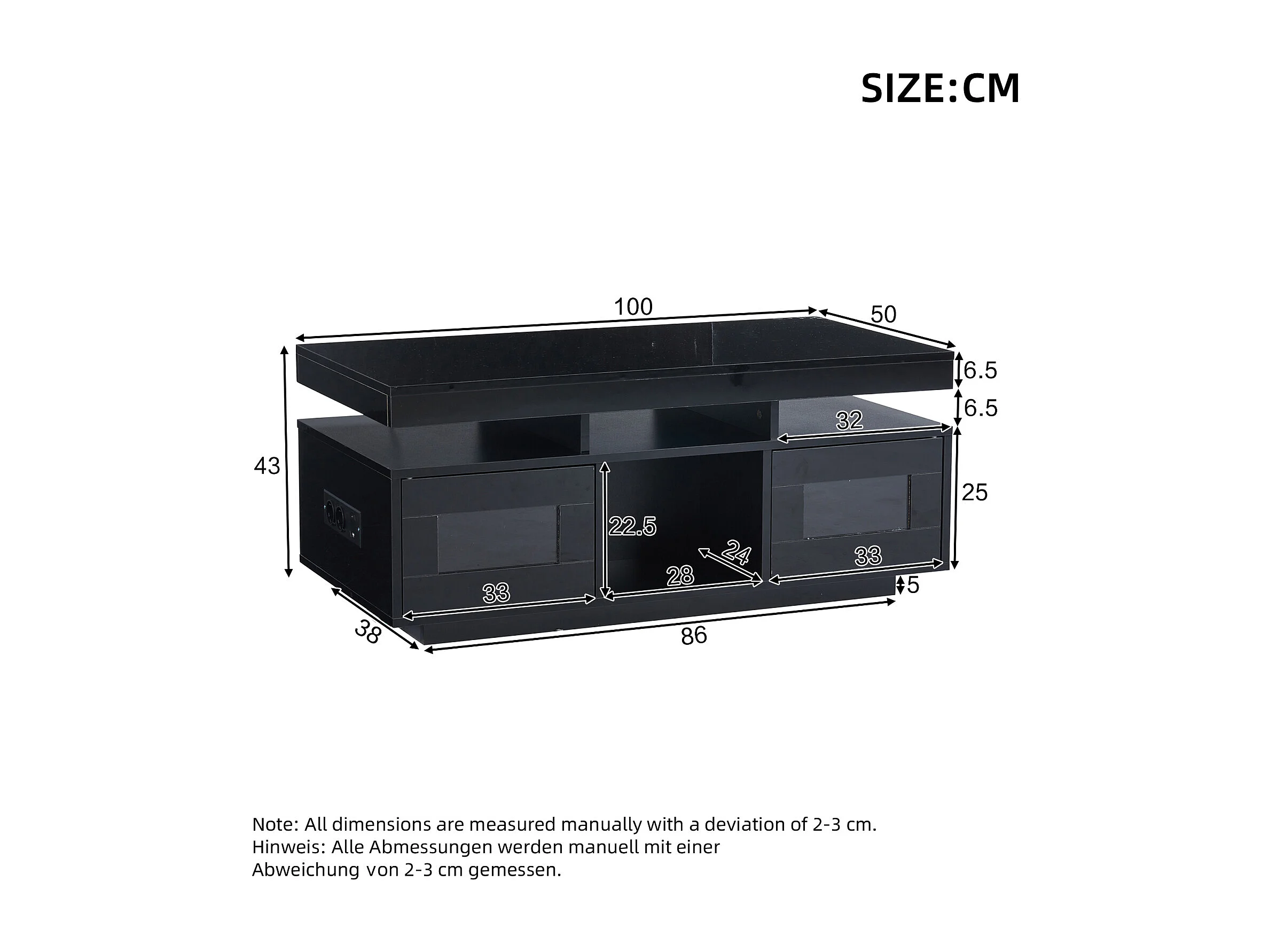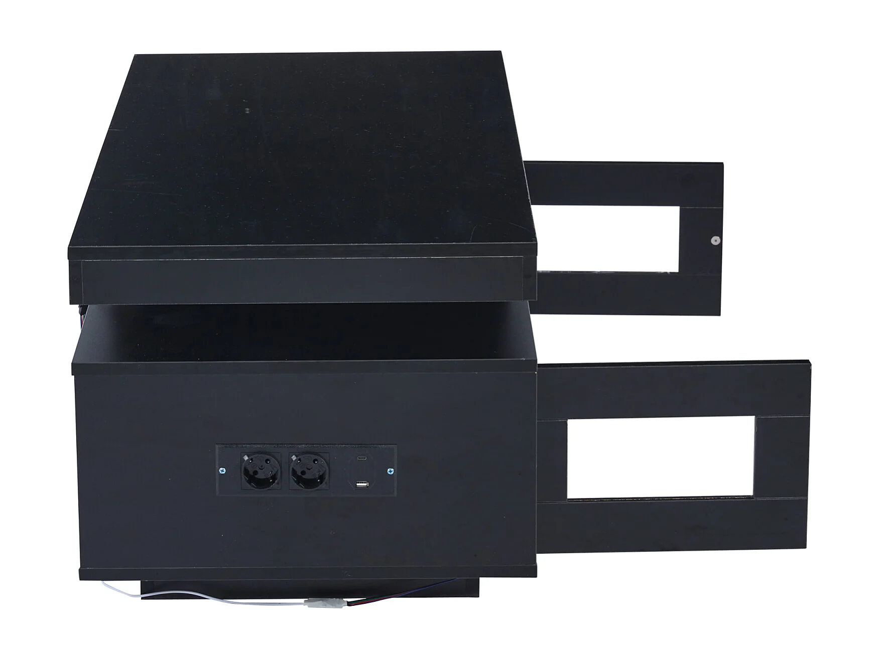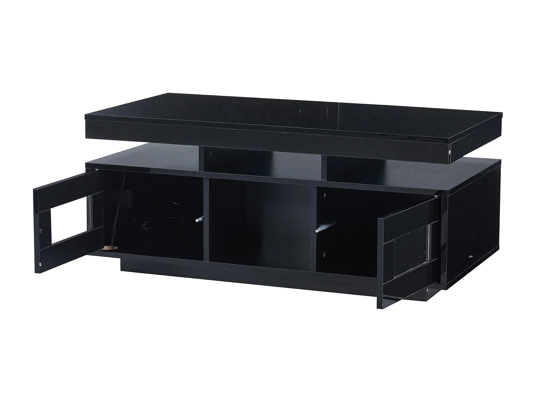 Table basse haute brillance, avec LED, Panneau de Particules + Verre Trempé, 100 x 50 x 43 cm, noir