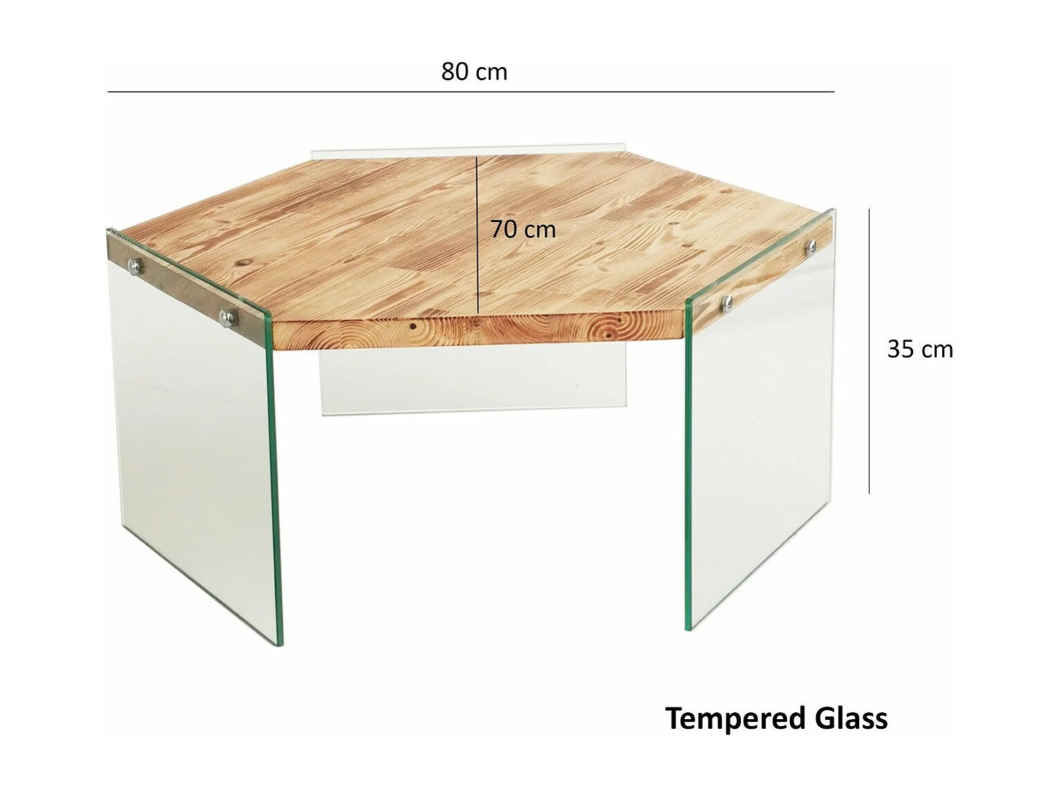 Table basse hexagonale Translucens Verre trempé Transparent et Pin massif Chêne clair