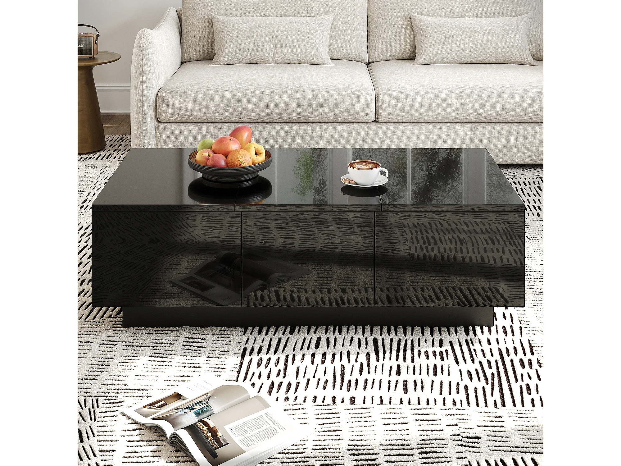 Table basse brillante - 100 x 50 x 40 cm - avec Leds + 2 portes + 1 tiroir - aggloméré - noir