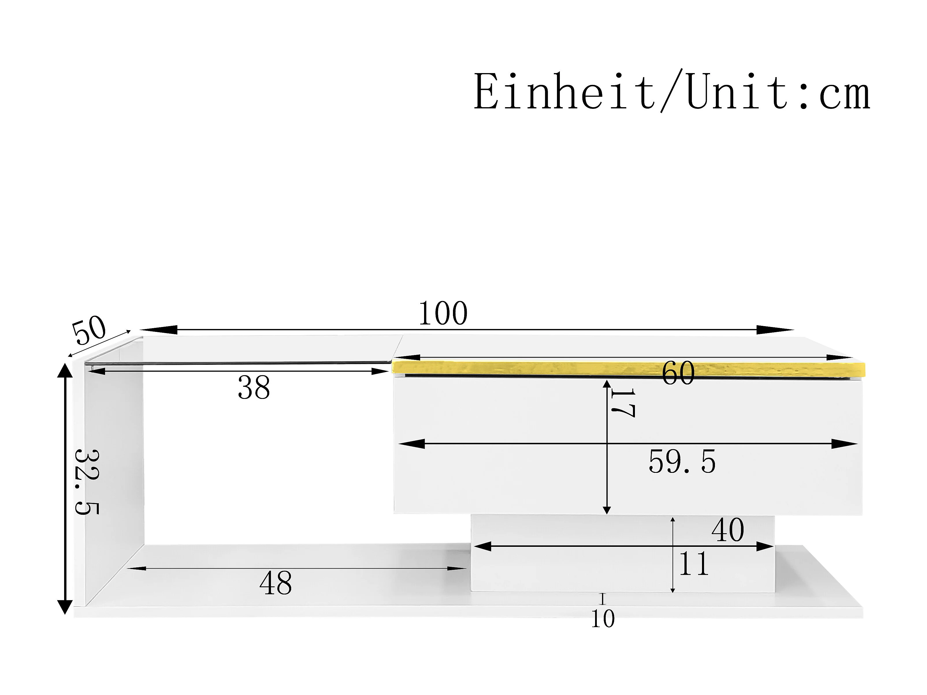 Table basse LED 100 cm, table basse blanche avec rangement ouvert, design moderne, éclairage 16 couleurs