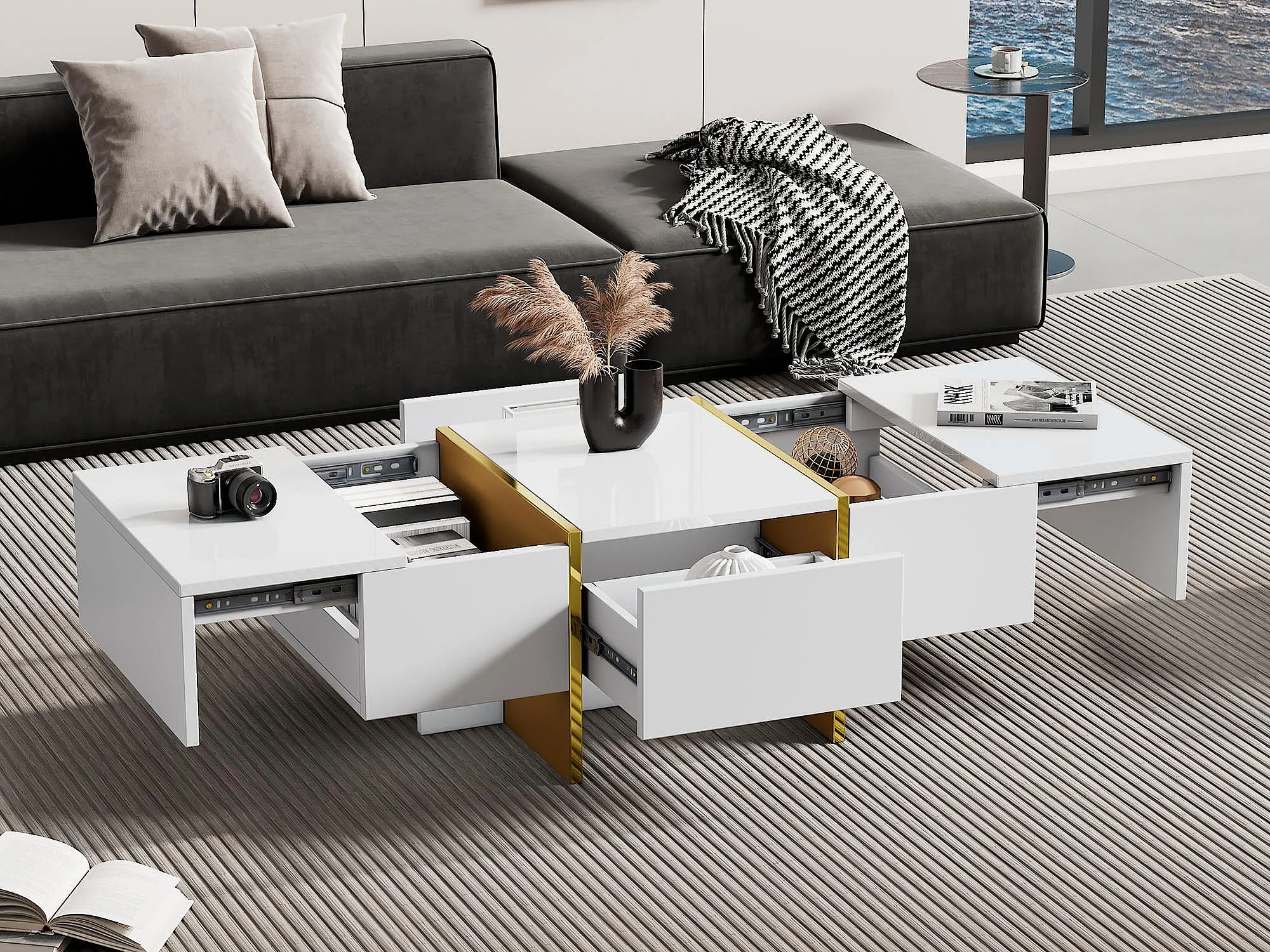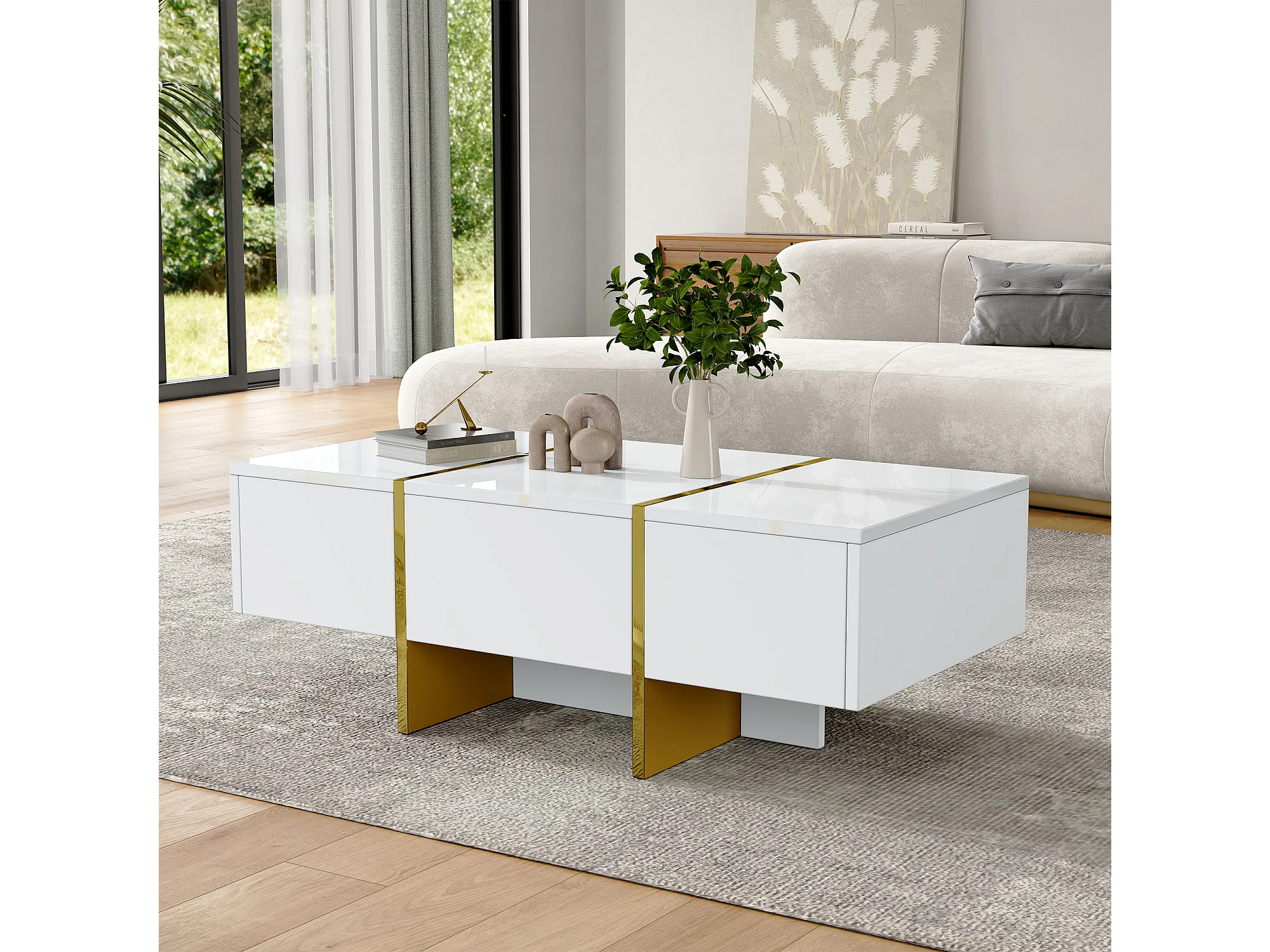 Table basse moderne 100x50x35 cm - Avec 4 tiroirs - Blanc