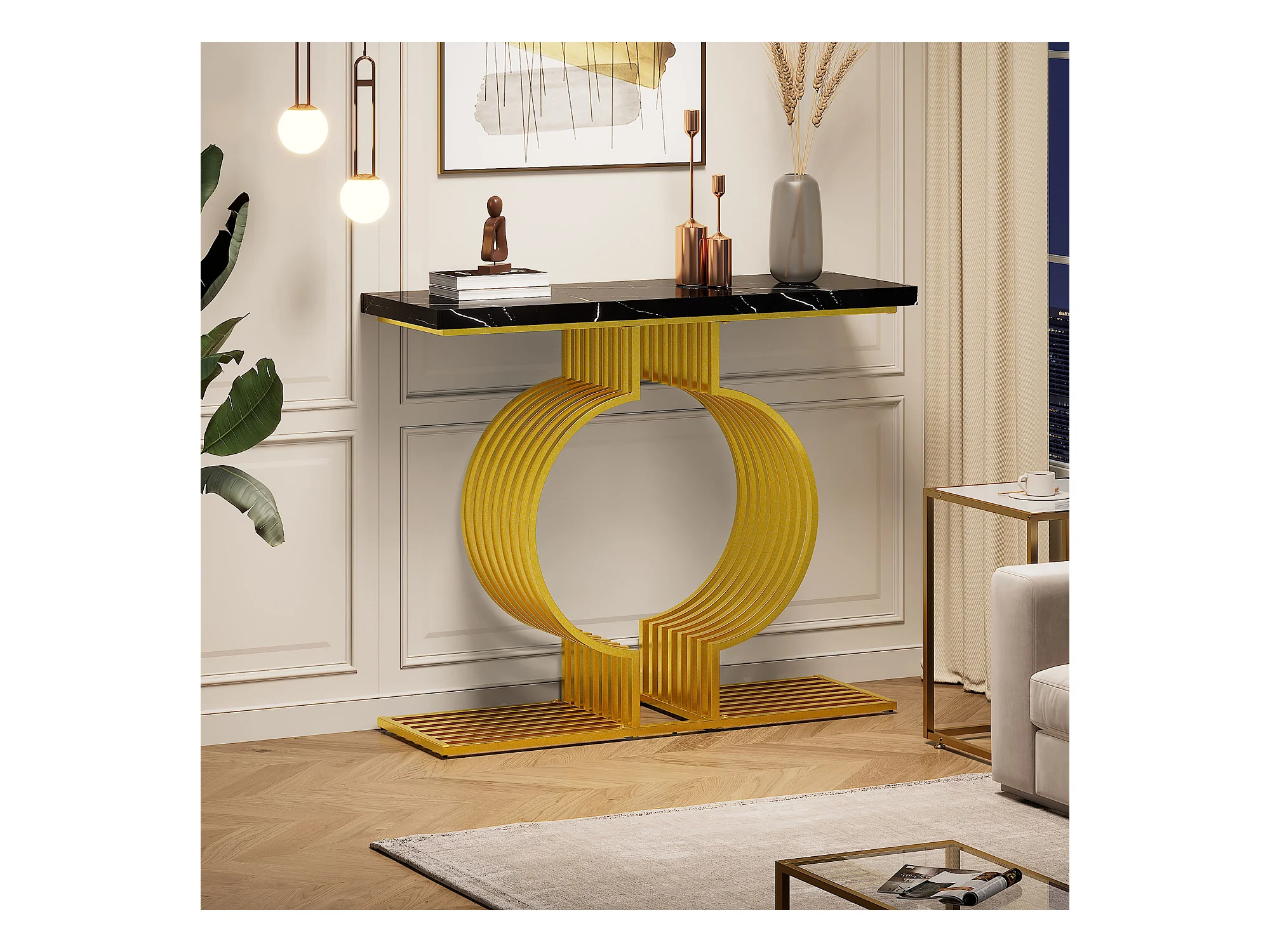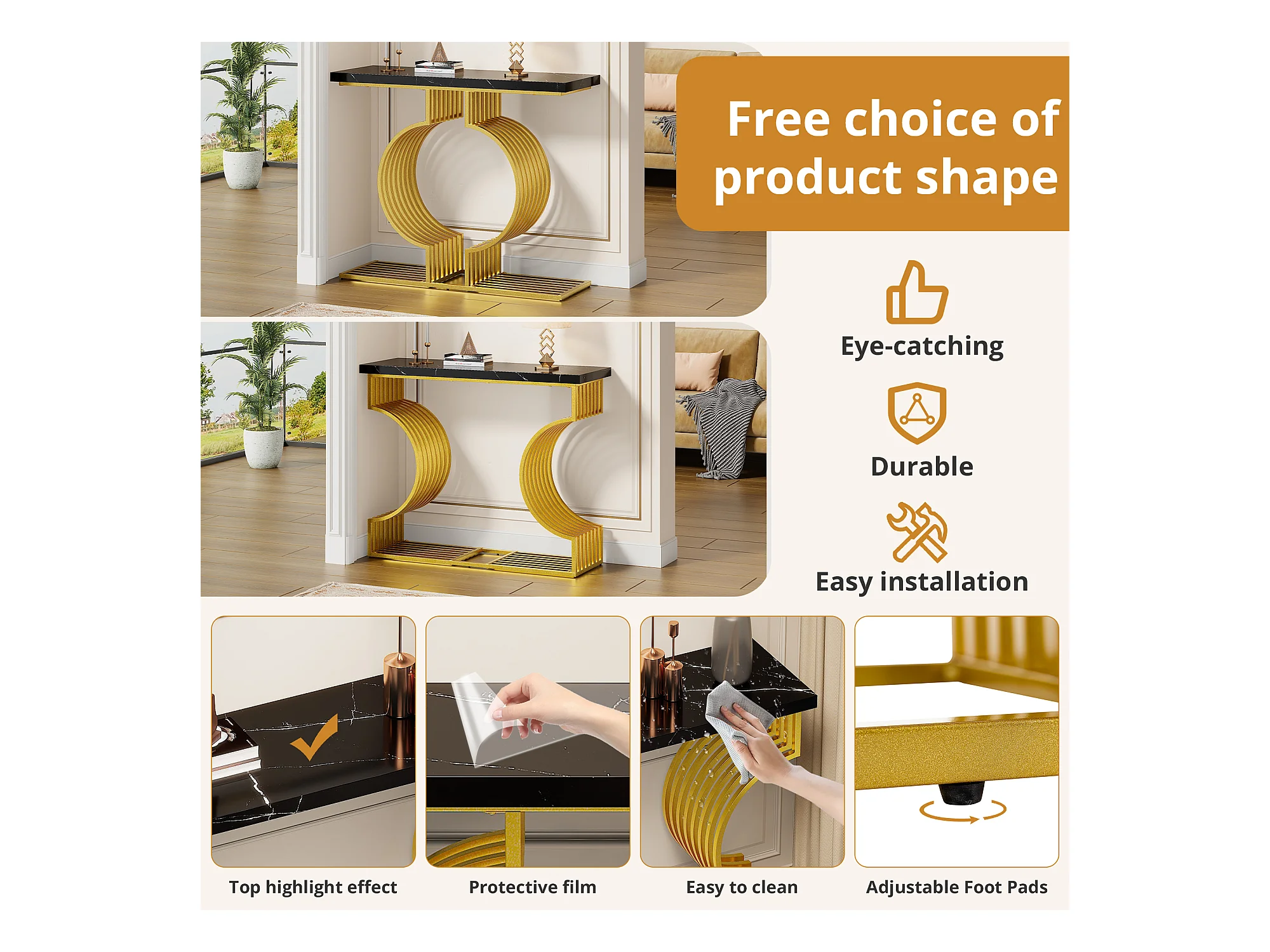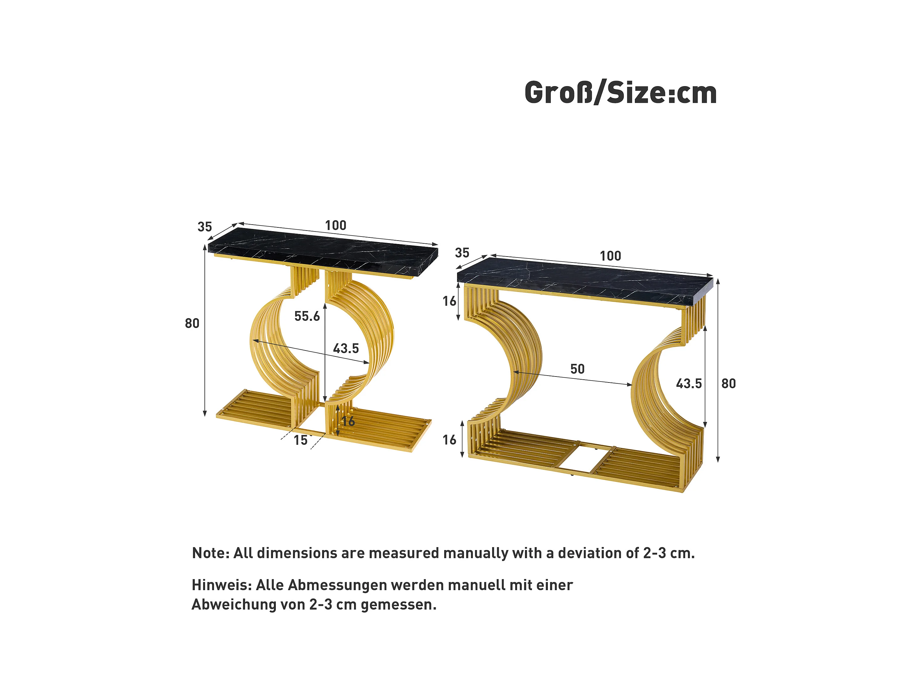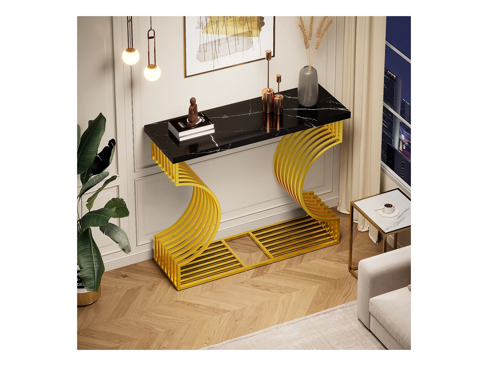 Table basse moderne simple - 100 x 30 x 80 cm - petite table d'appoint - MDF - noir + doré