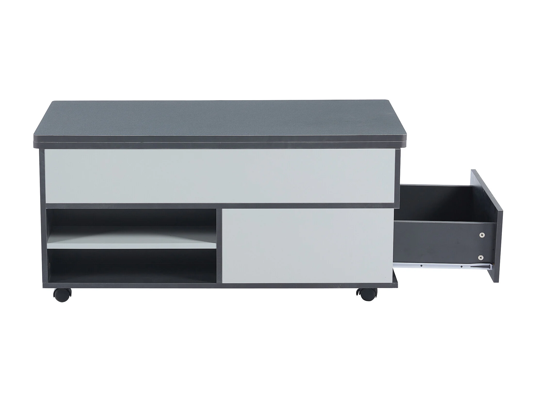 Table basse rectangle à roulettes 100x98x65cm avec plateau relevable et 1 tiroir, rangement intégré spacieux, gris et blanc