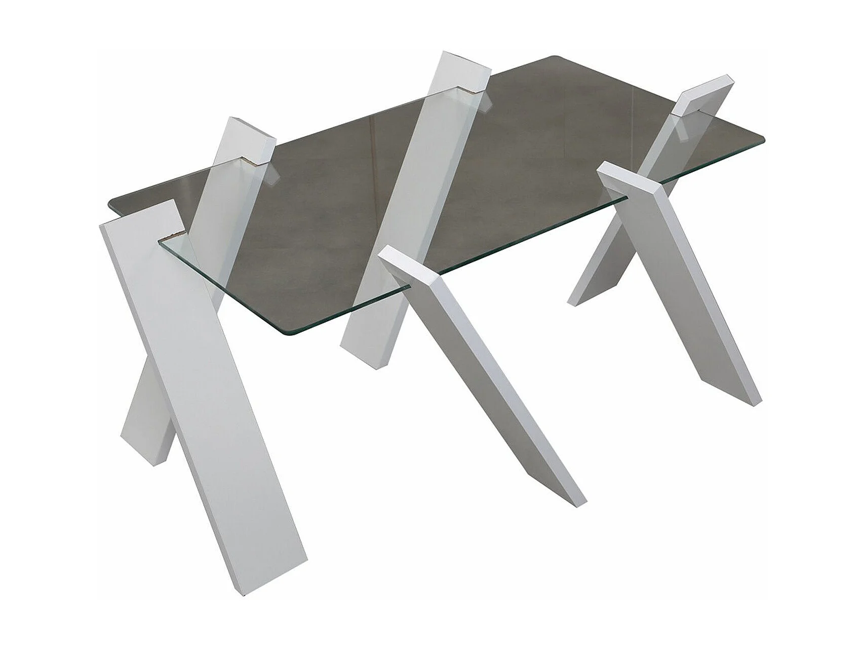 Table basse moderne Kerlo L105cm Bois Blanc et Verre trempé Transparent