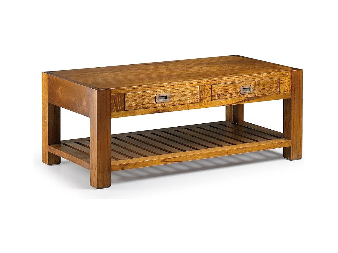 Table basse rectangulaire en bois massif de Mindy 2 tiroirs Orka 120cm