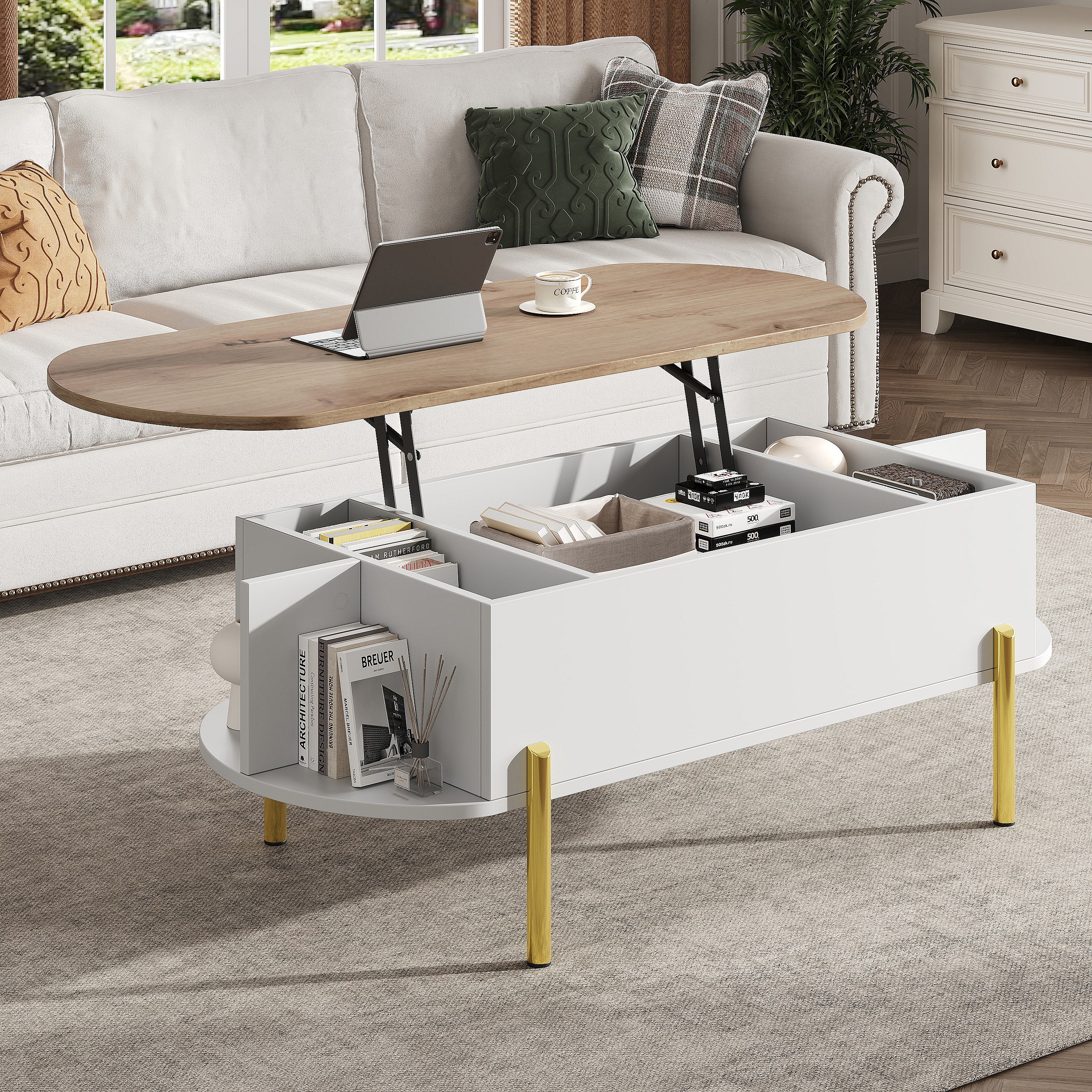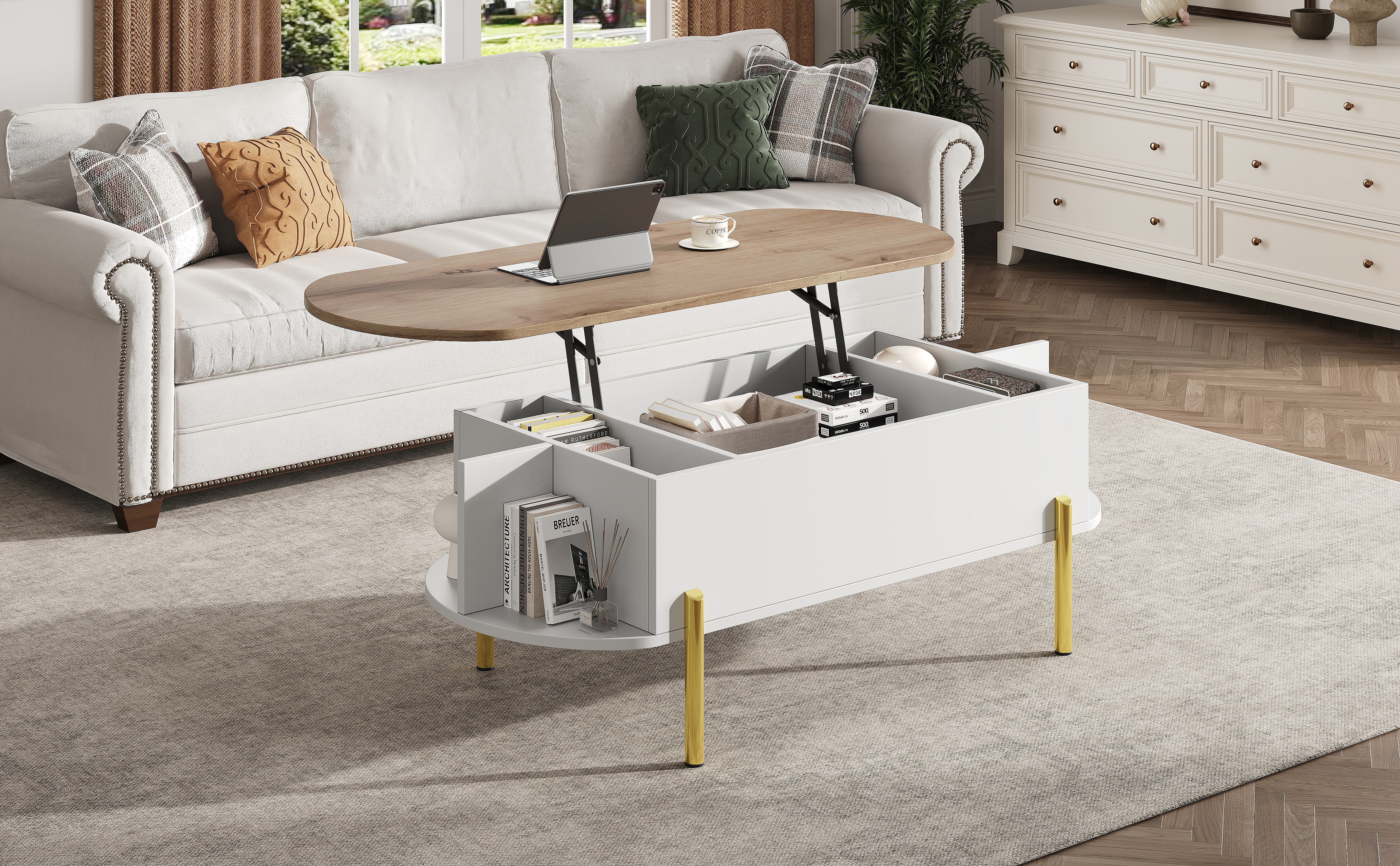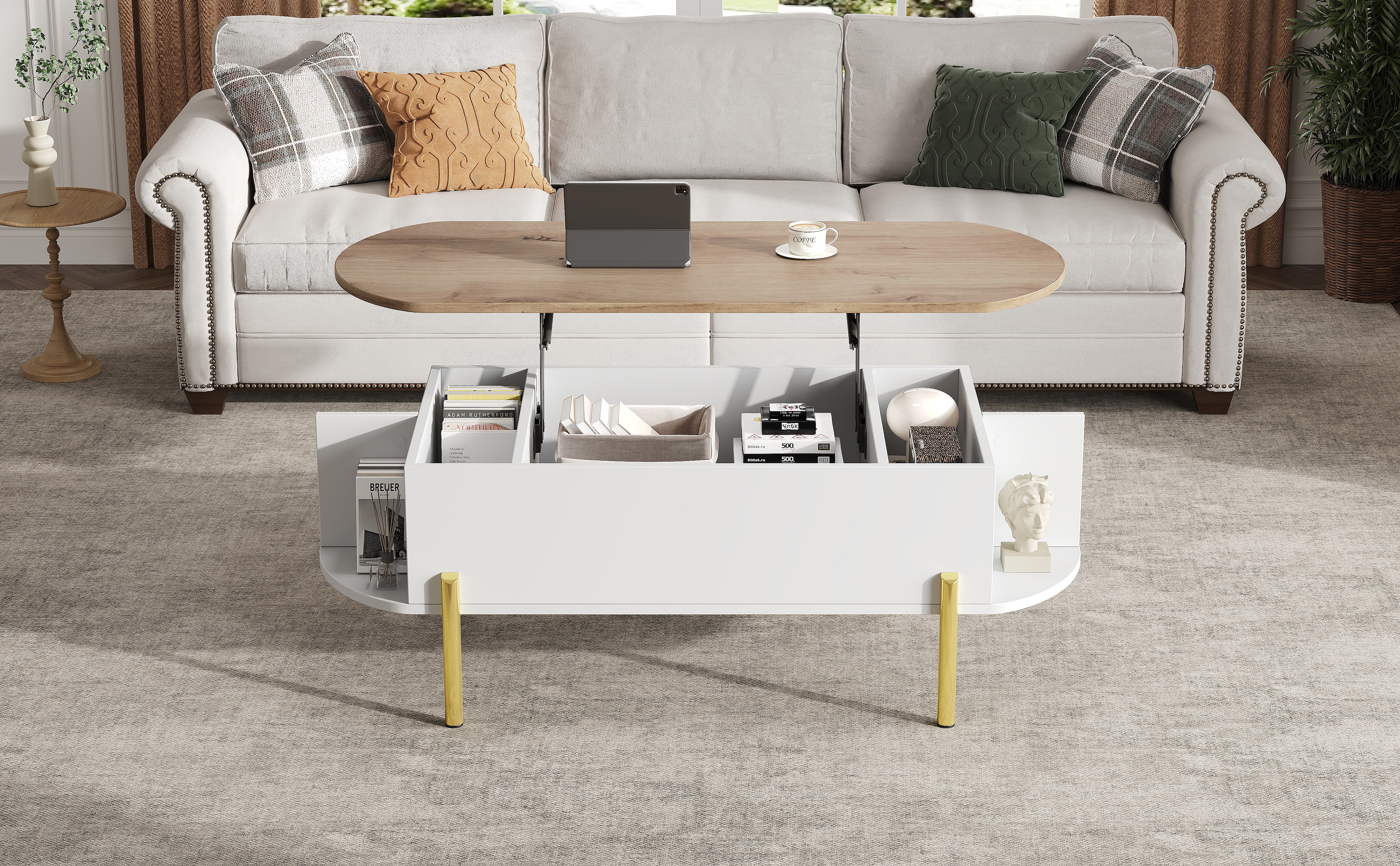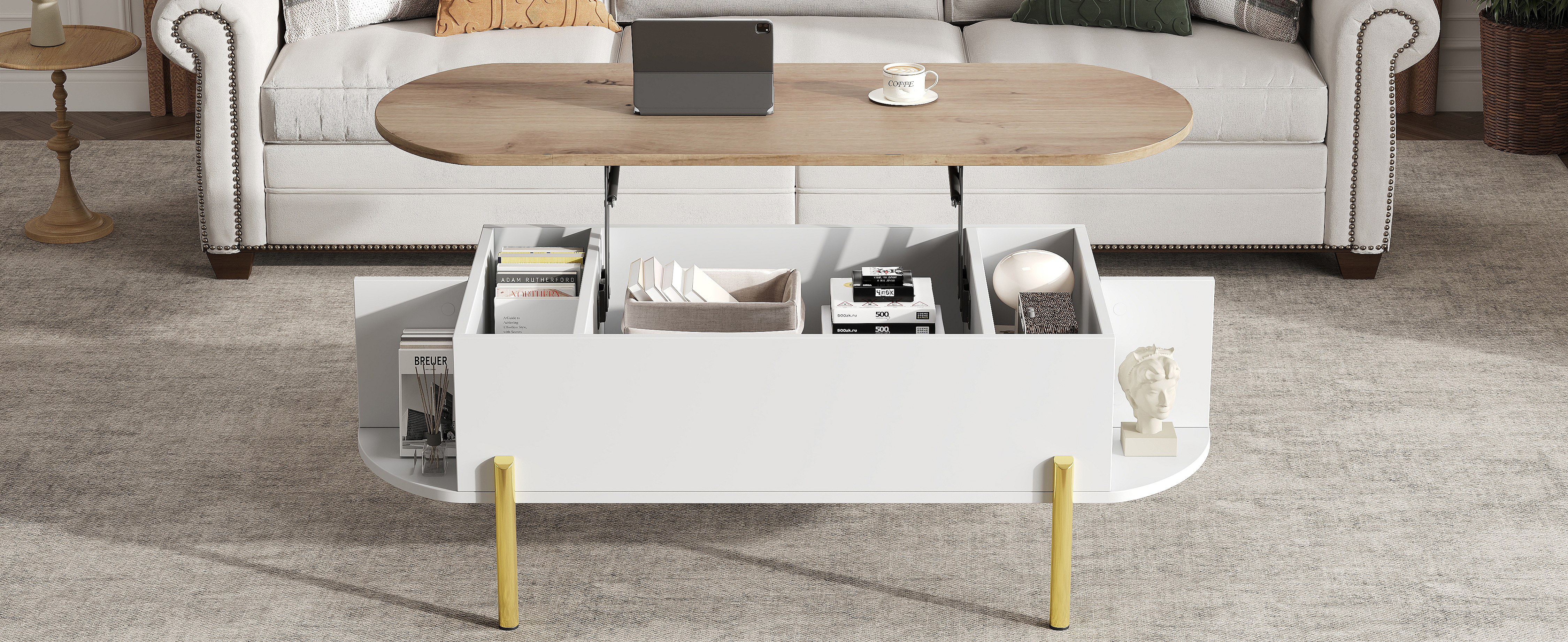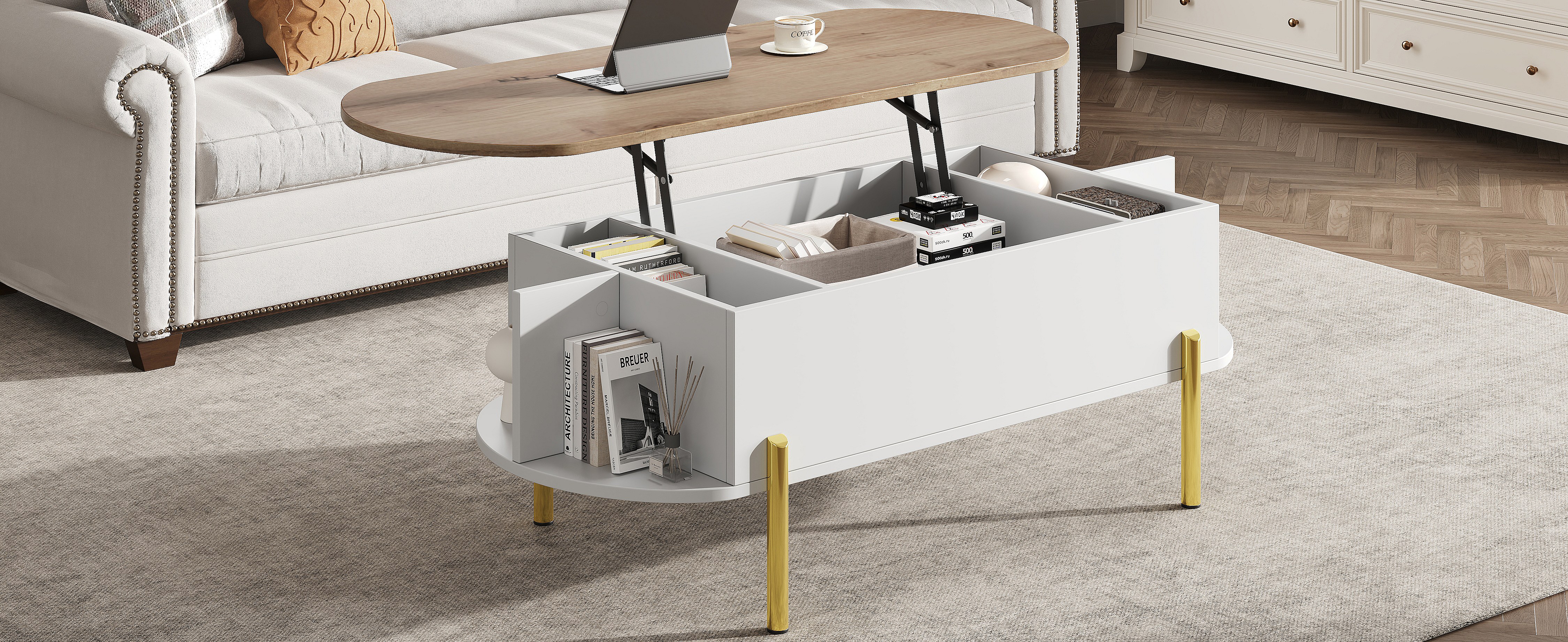 Table basse relevable avec 7 rangements - 120 x 50 x 43 cm - tables de canapé - MDF - blanc