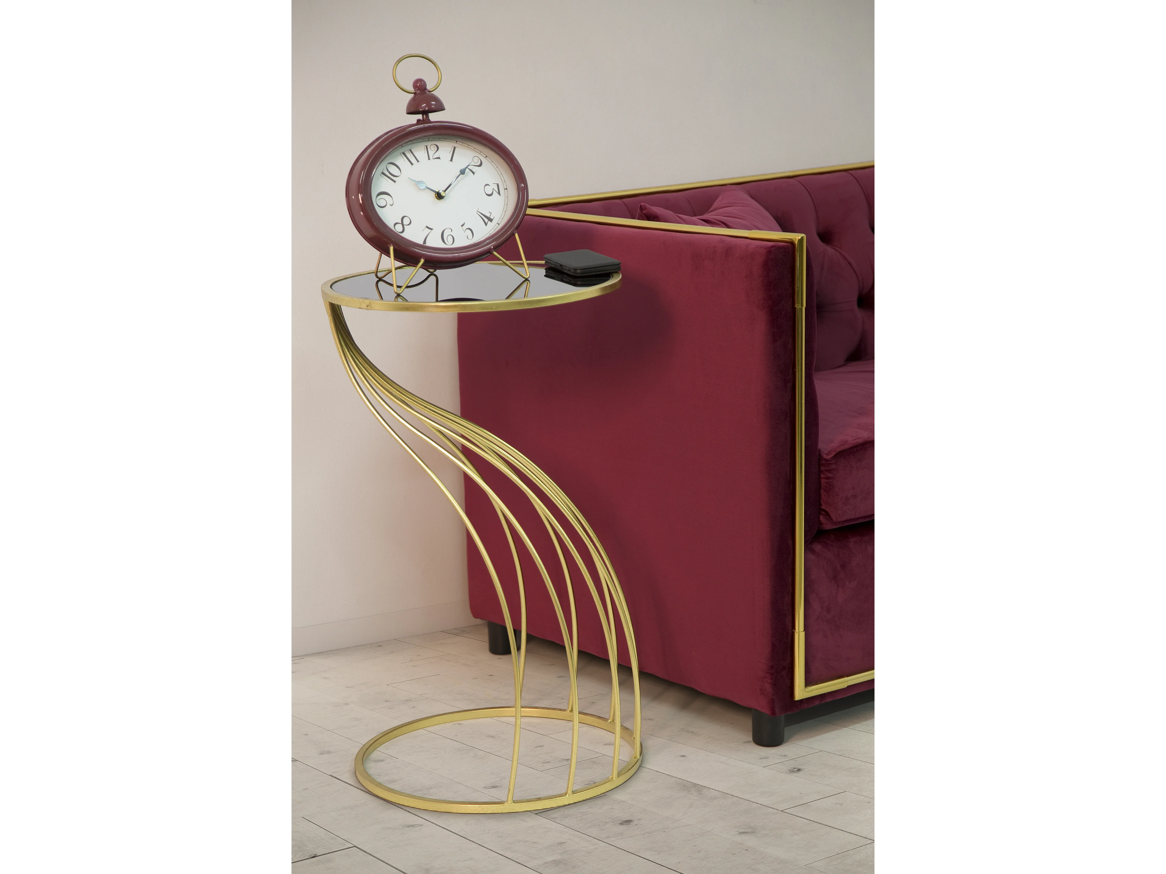 Table d'appoint ronde miroir noir et métal doré Zen