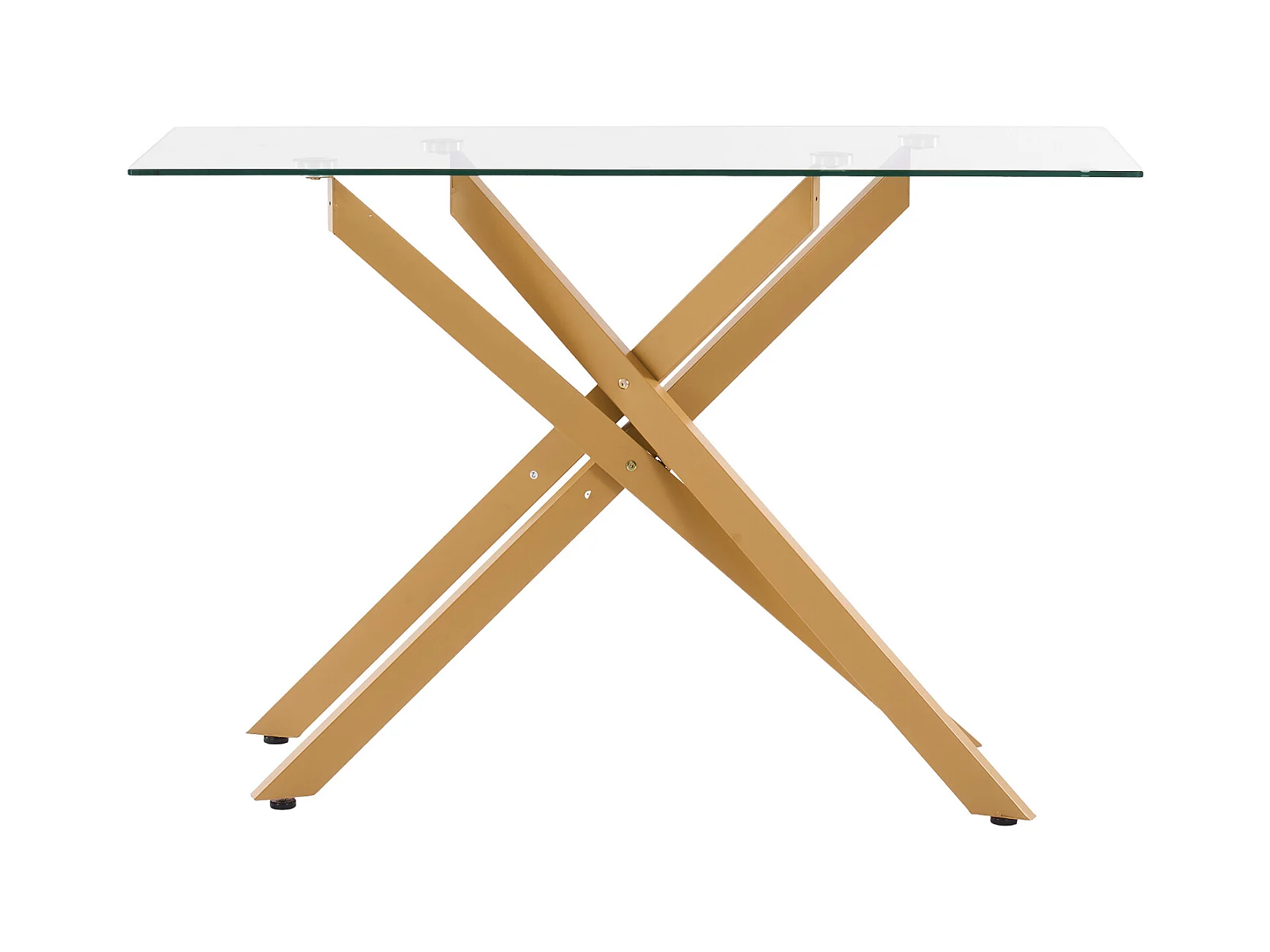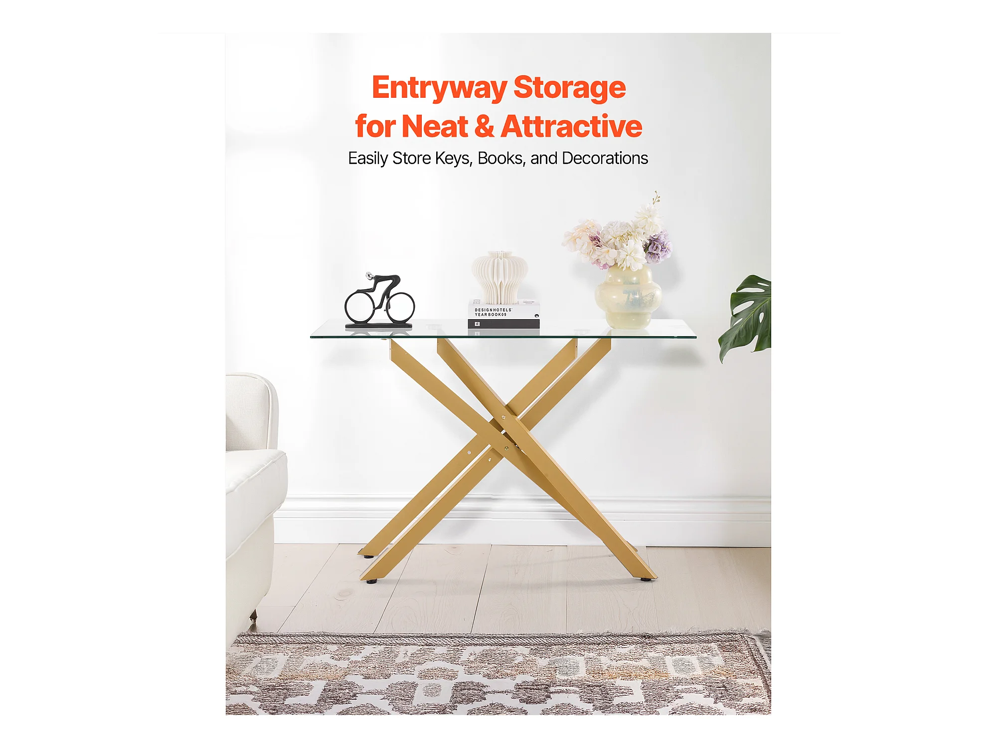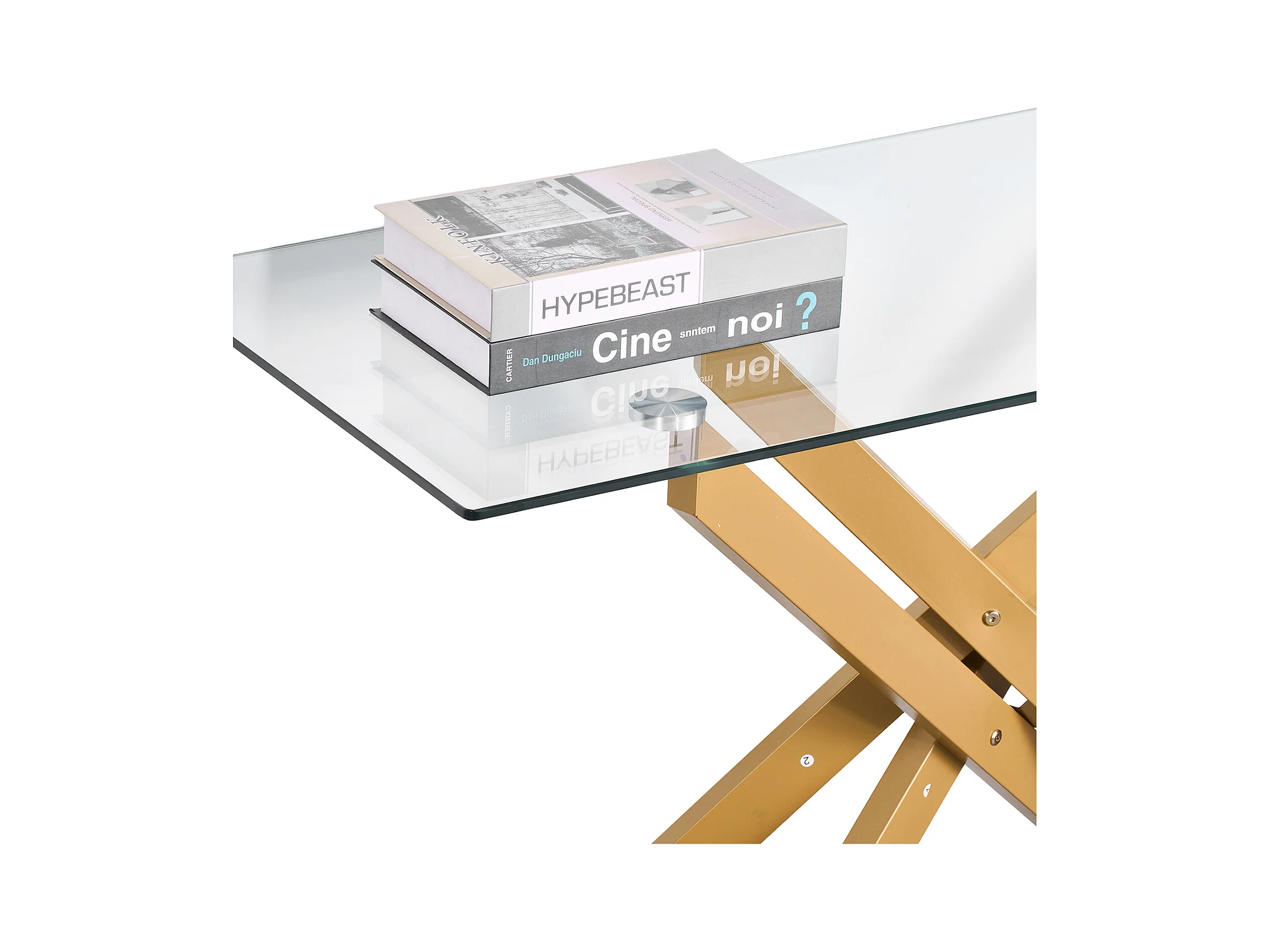 Table Basse SucceBuy en Verre Moderne, avec Plateau en Verre Trempé et Pieds Croisés en Métal, Équipée de Patins Réglables Antidérapants, Idéale pour le Salon