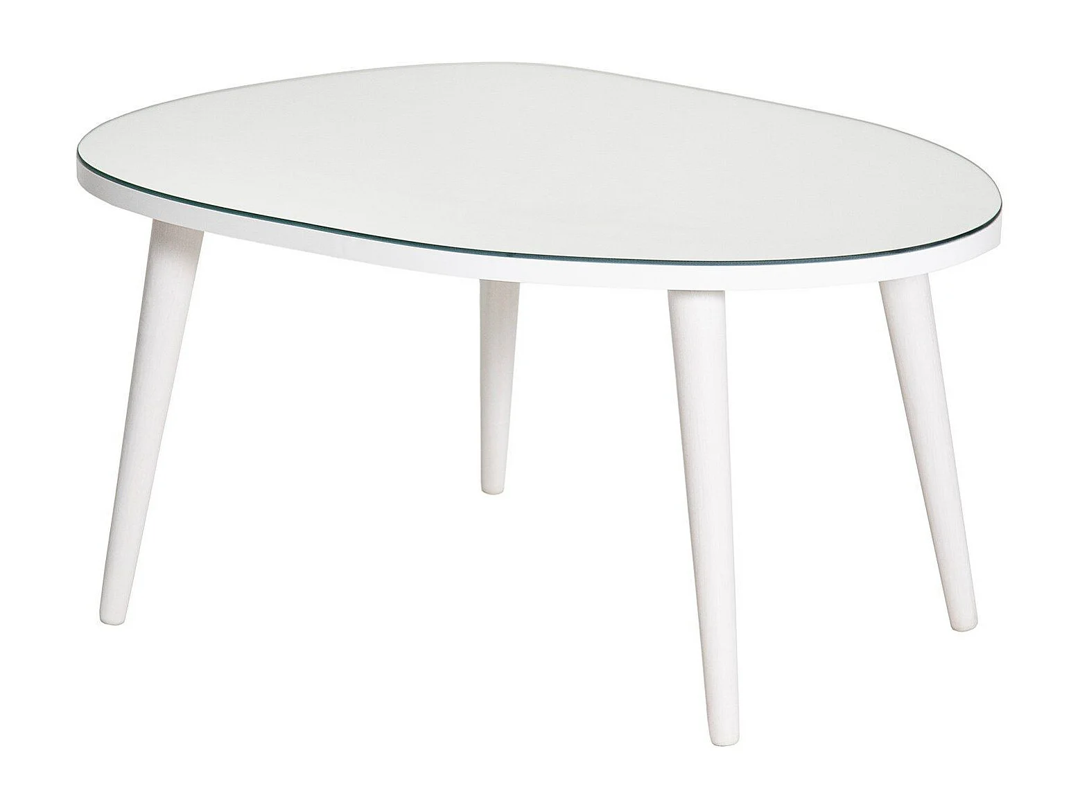 Table basse trépied ovale Casina 55x75cm Bois Blanc et Verre trompé Miroir