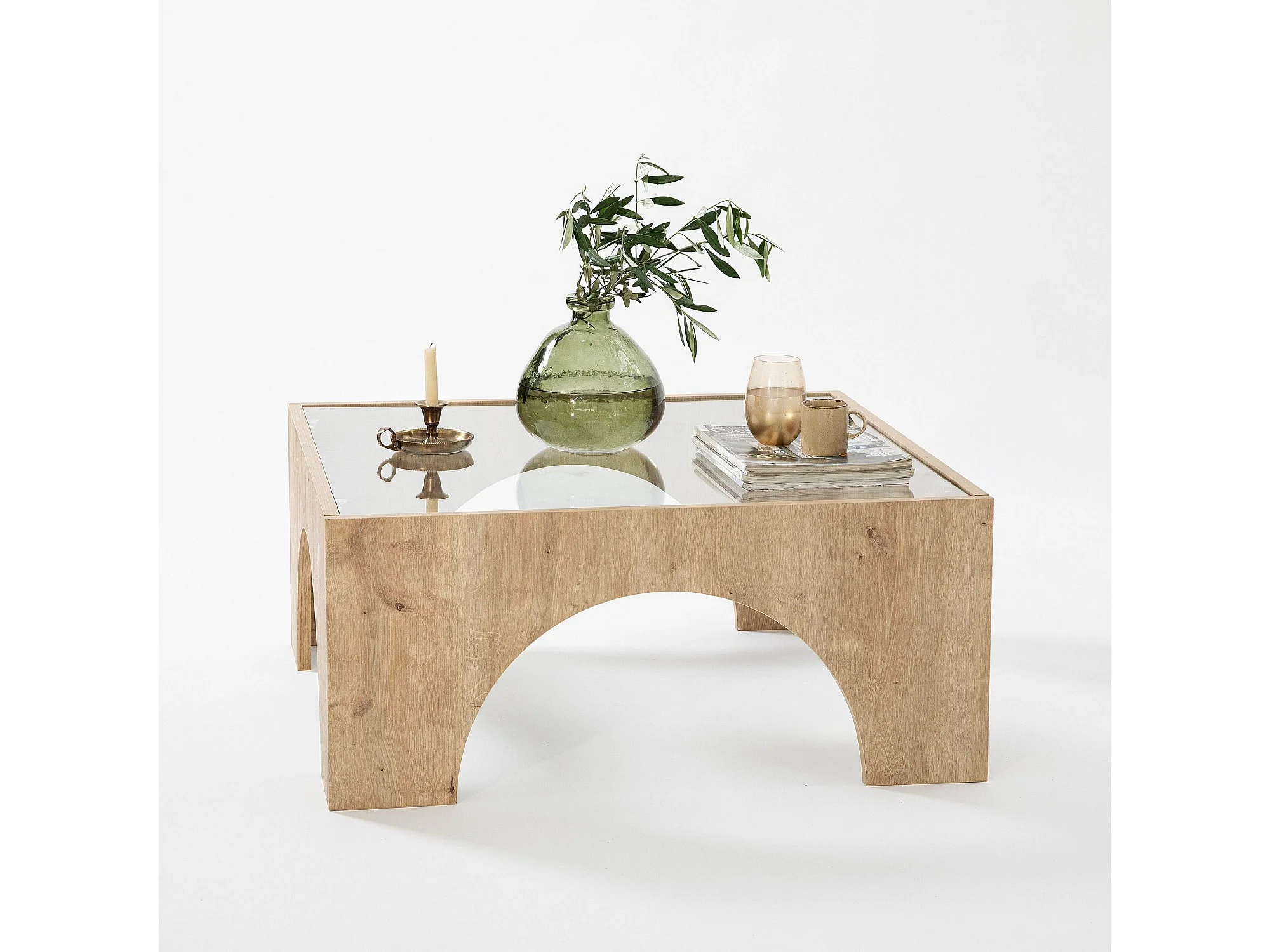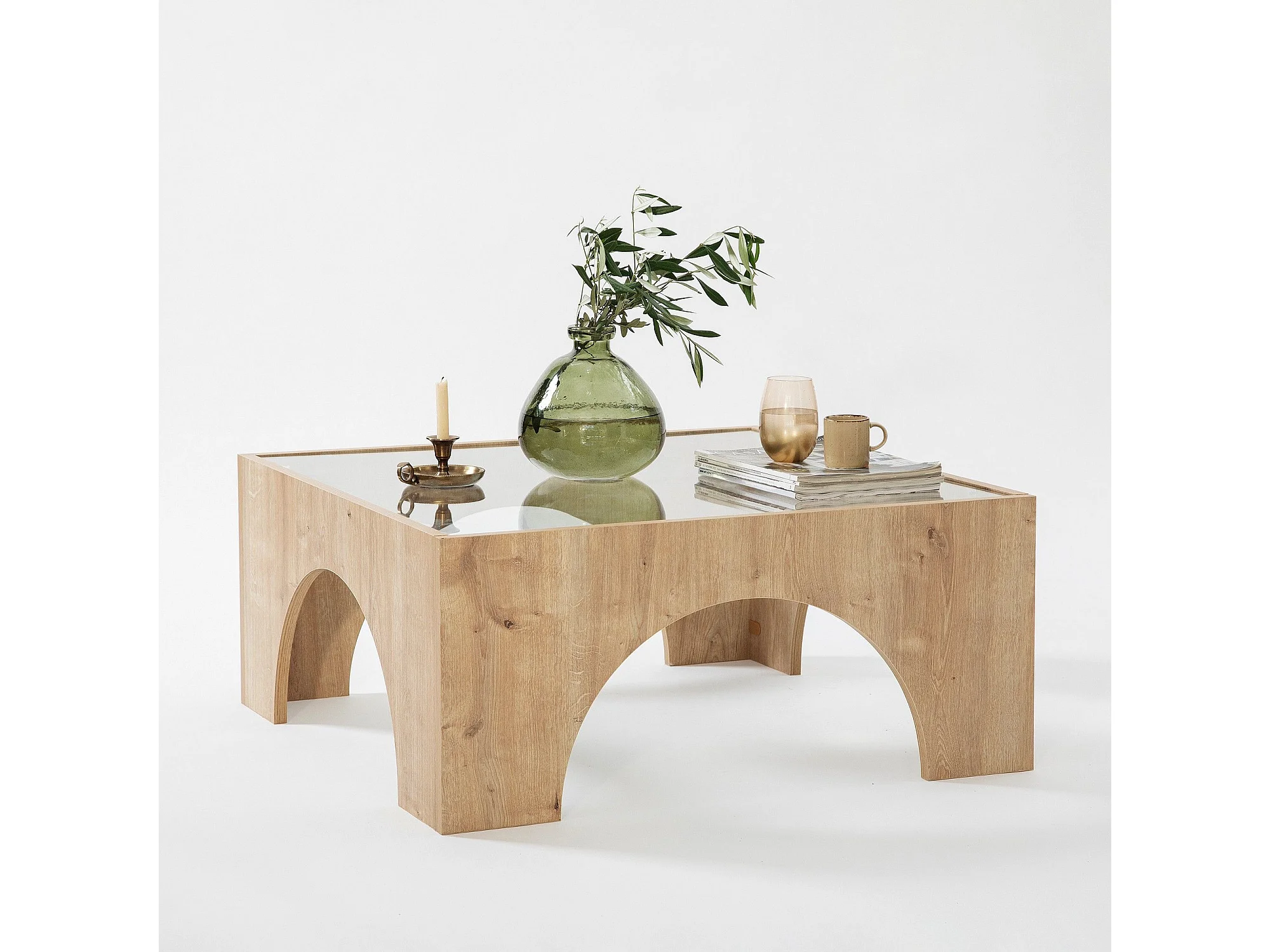 Table basse Vittina 80x80cm Bois Chêne clair et Verre Transparent