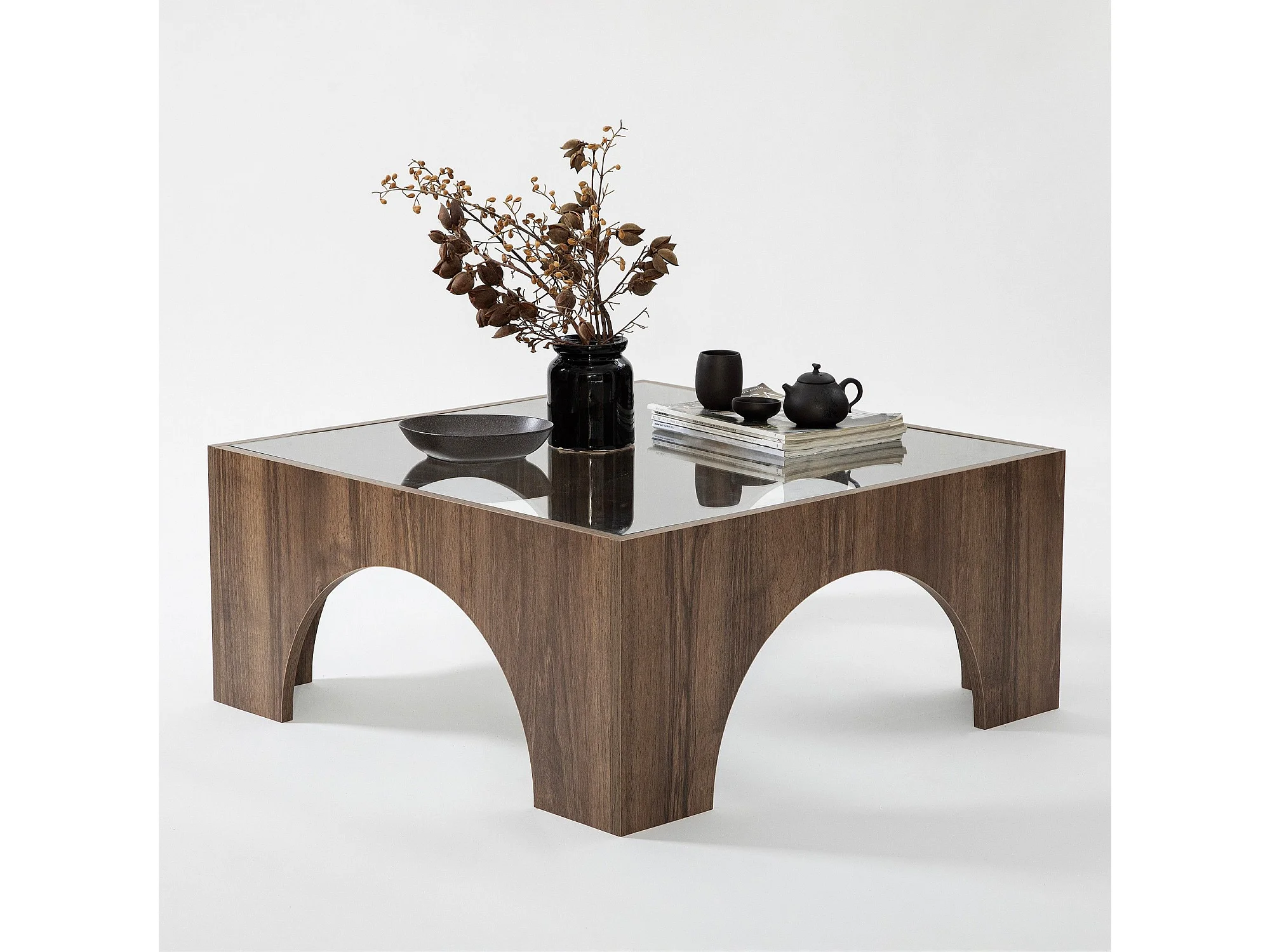 Table basse Vittina 80x80cm Bois foncé et Verre Transparent