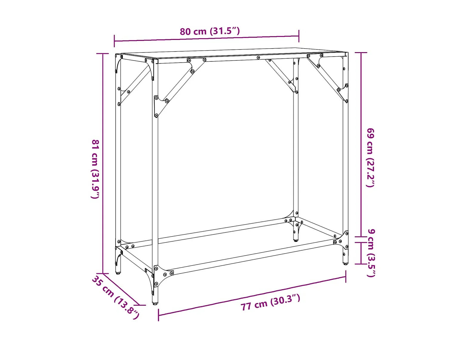 Table console avec dessus en verre noir 80x35x81 cm acier