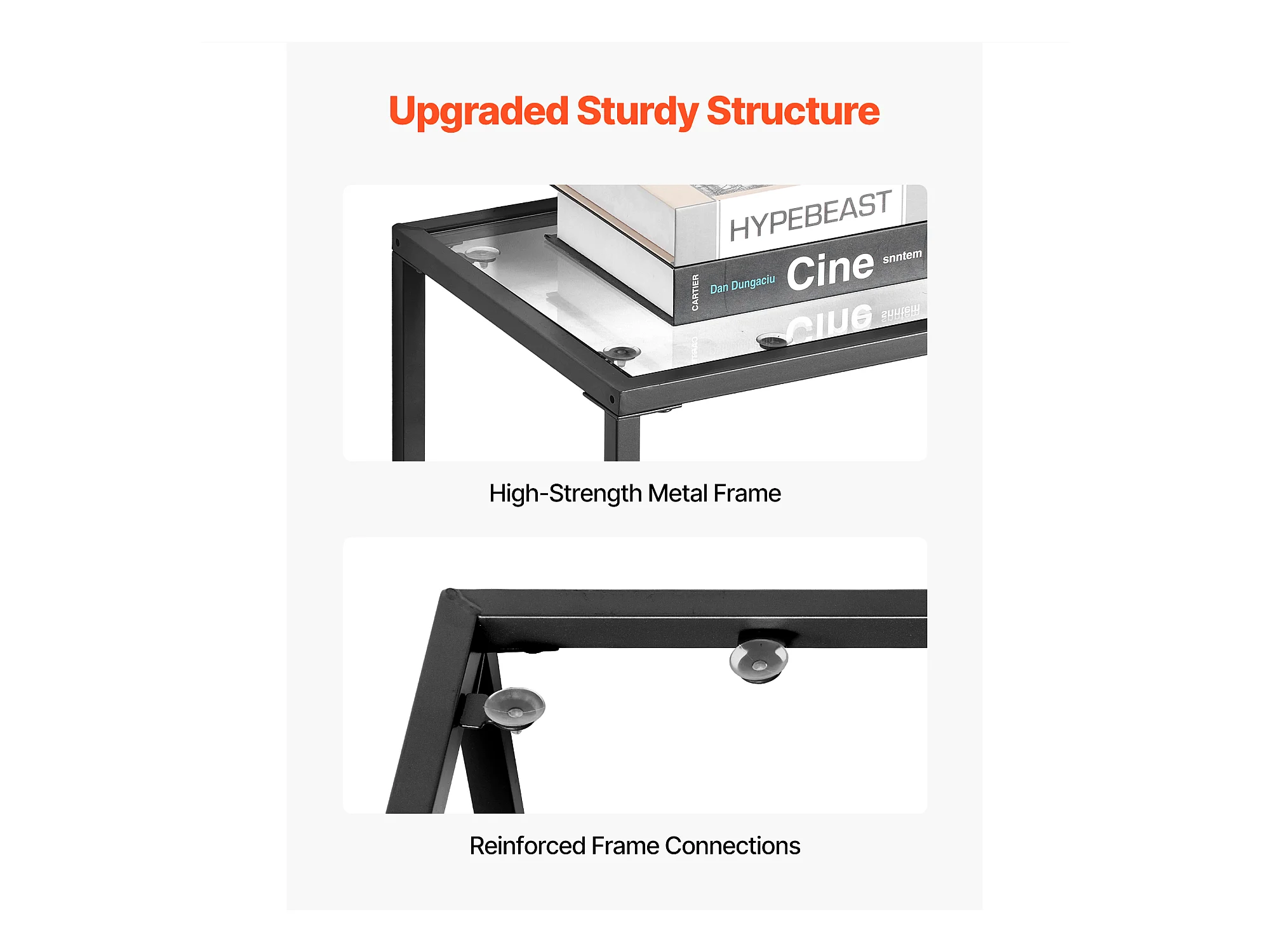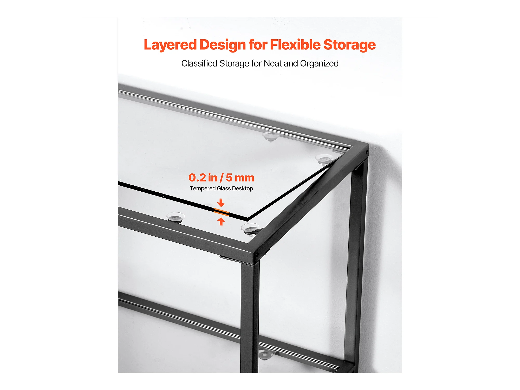 Table Console en Verre SucceBuy 3 Niveaux, Rectangulaire Moderne, Bout de Canapé avec Plateau en Verre Trempé, Pieds en Fer et Dispositif Anti-basculement, Noir