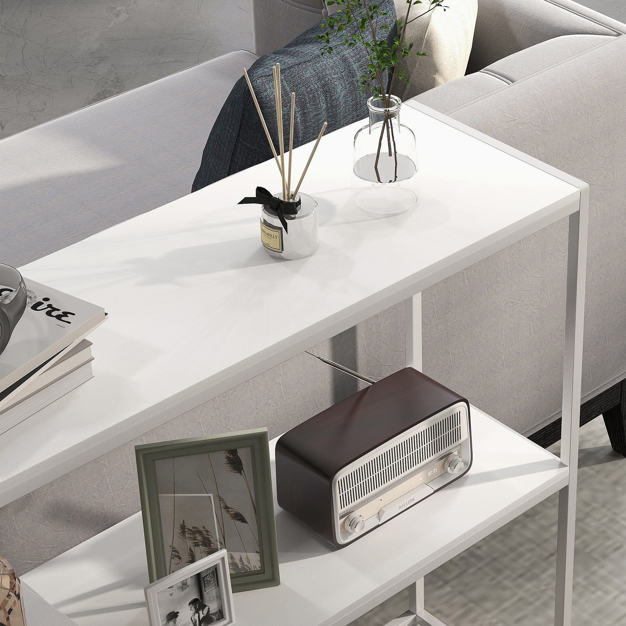 Table console plateau étagère dim. 100L x 30l x 87H cm acier panneaux blanc