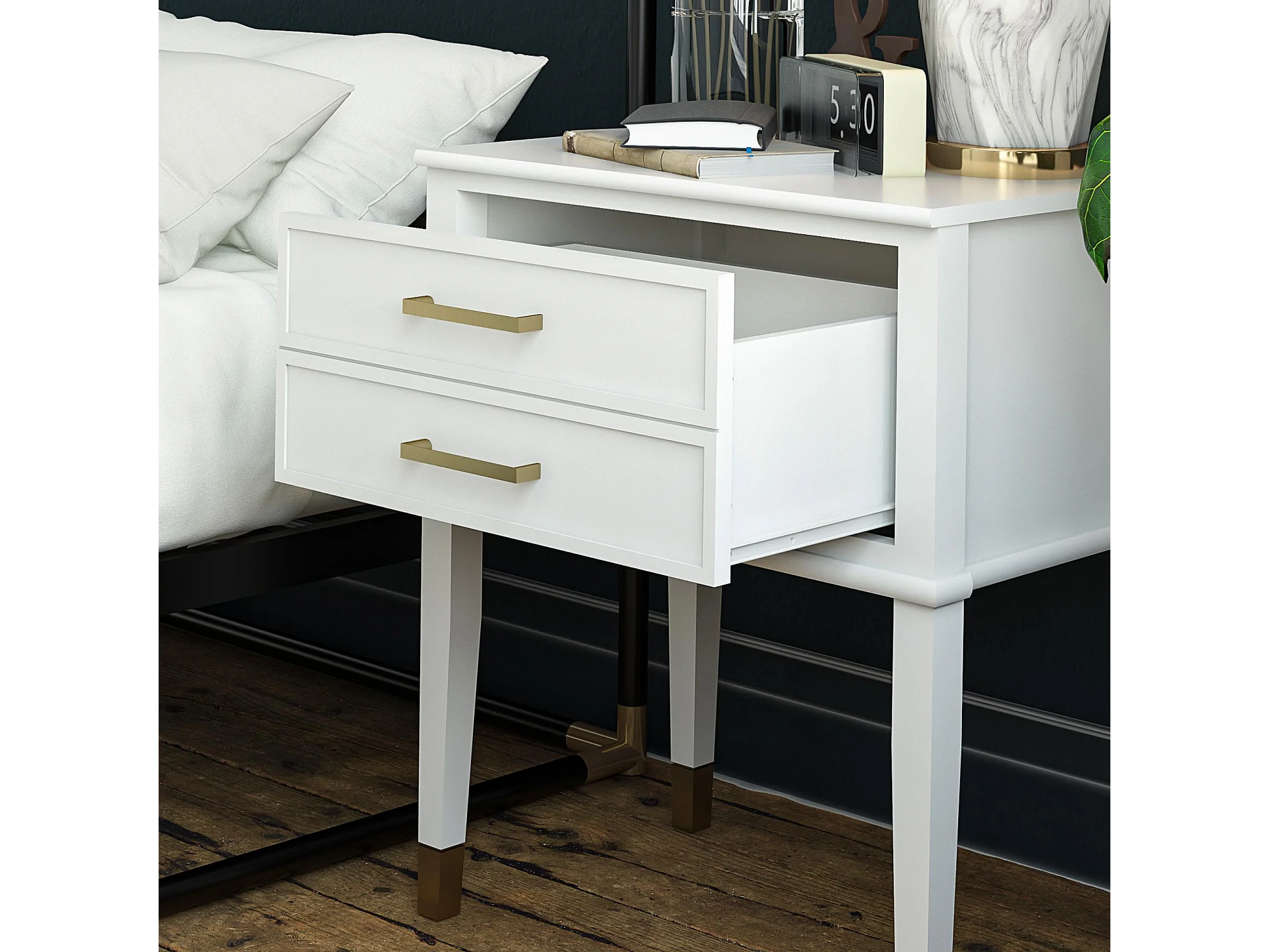 Westerleigh | Table d'appoint avec 2 tiroirs en MDF blanc