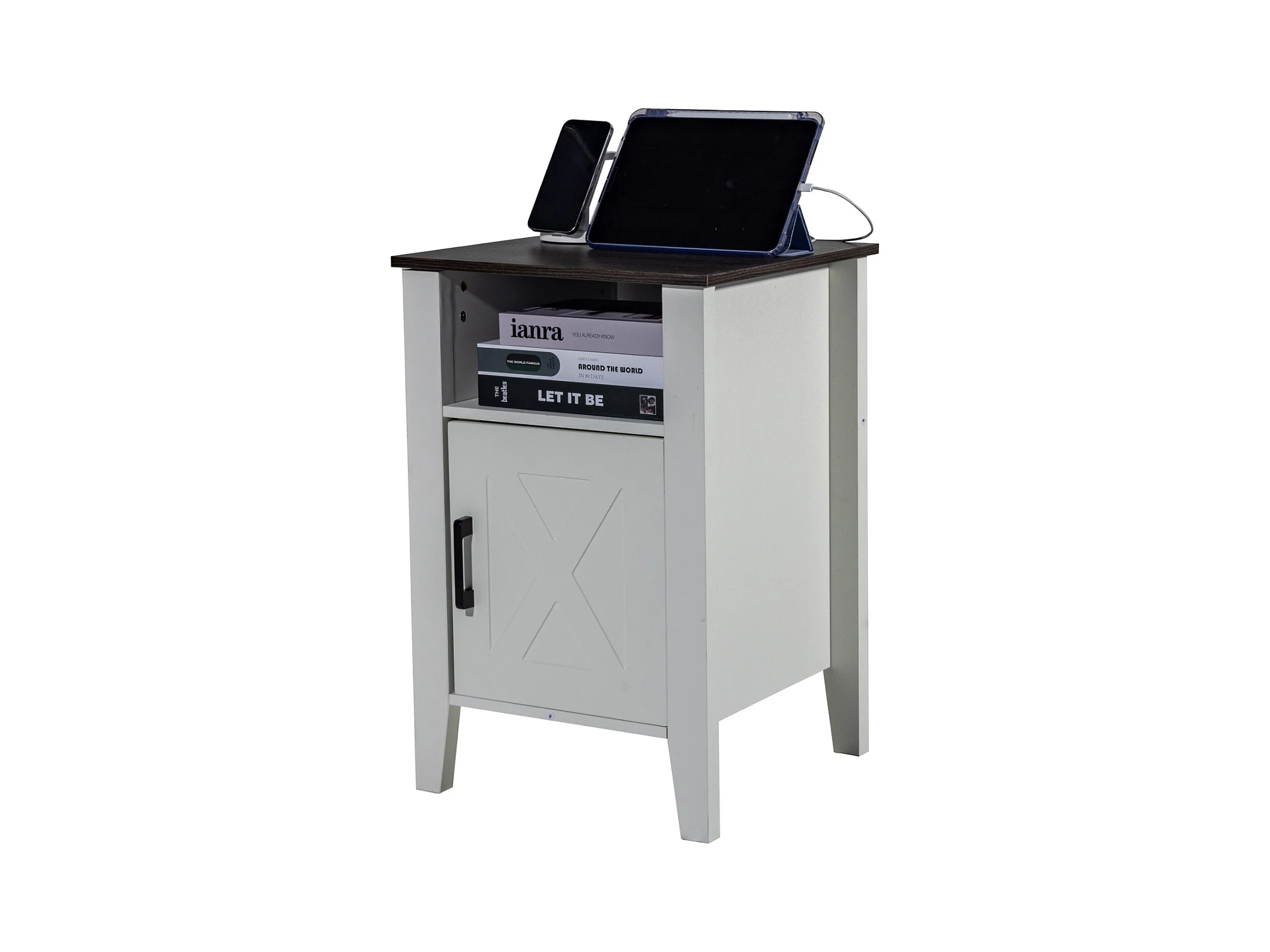 Table d'Appoint SucceBuy, Lot de 2, 3 Niveaux, Blanc, avec Prises USB et Éclairage LED