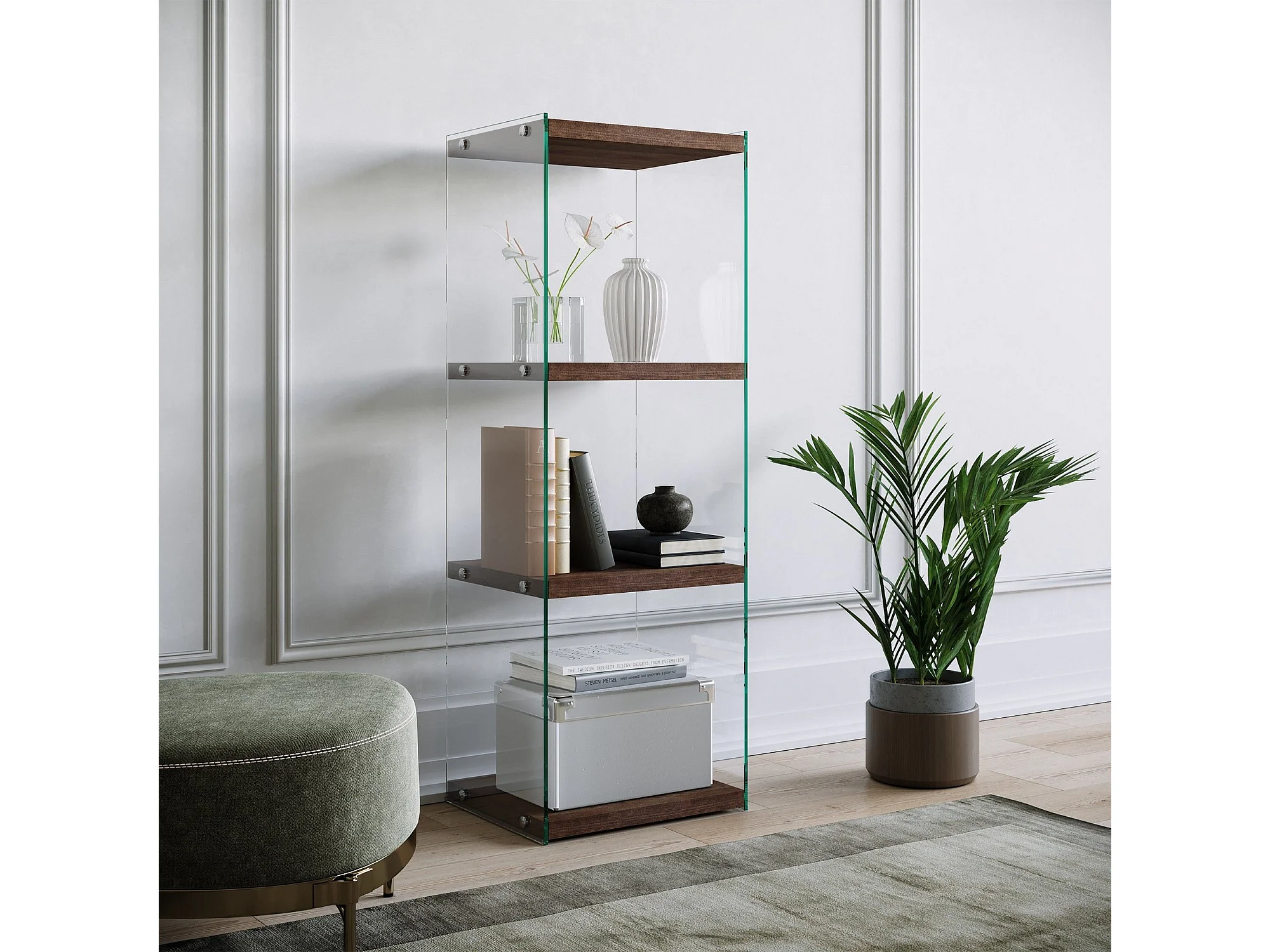 Table d'appoint Translucens L40xH120cm Pin massif foncé et Verre Transparent