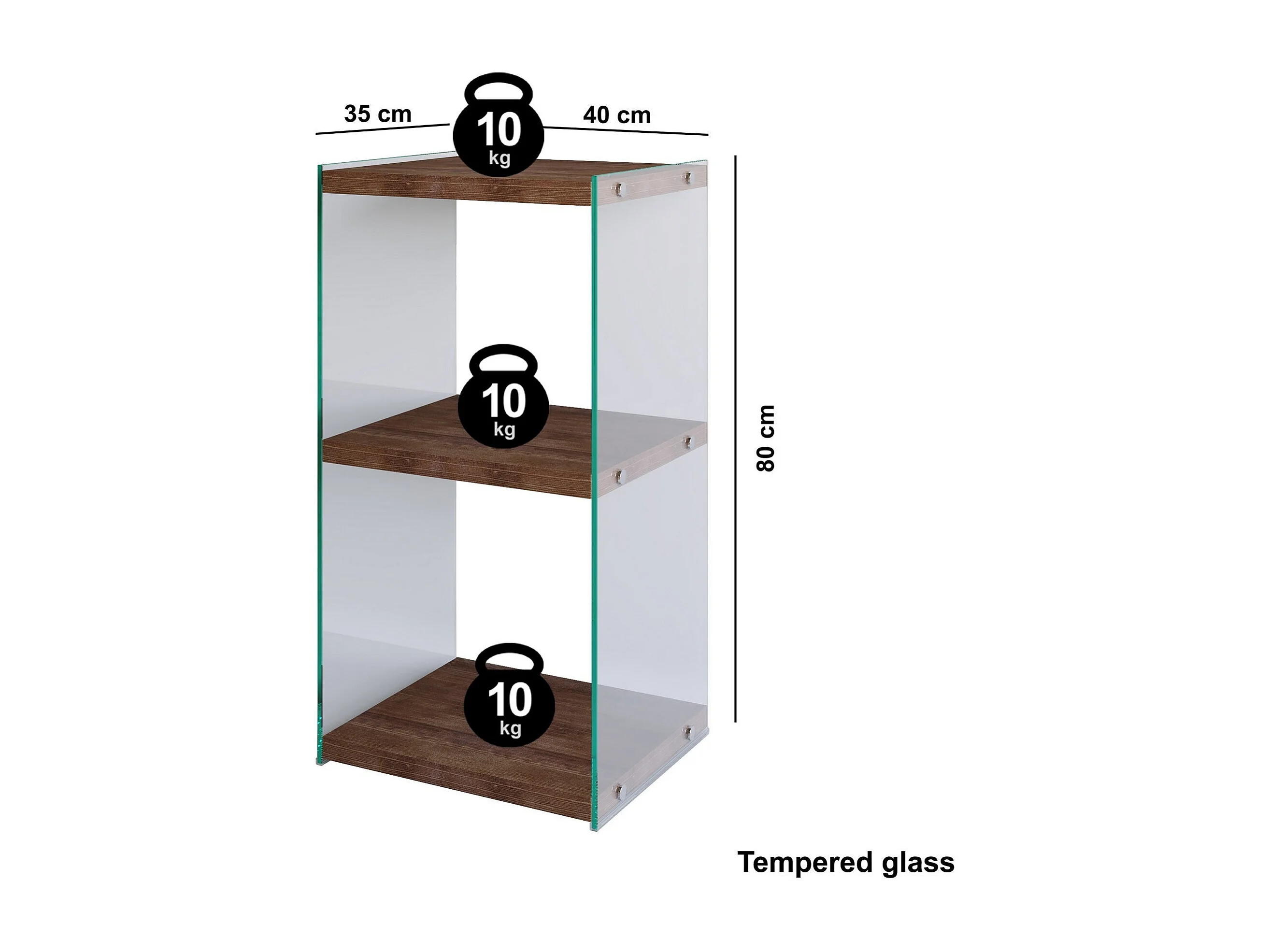 Table d'appoint Translucens L40xH80cm Pin massif foncé et Verre Transparent
