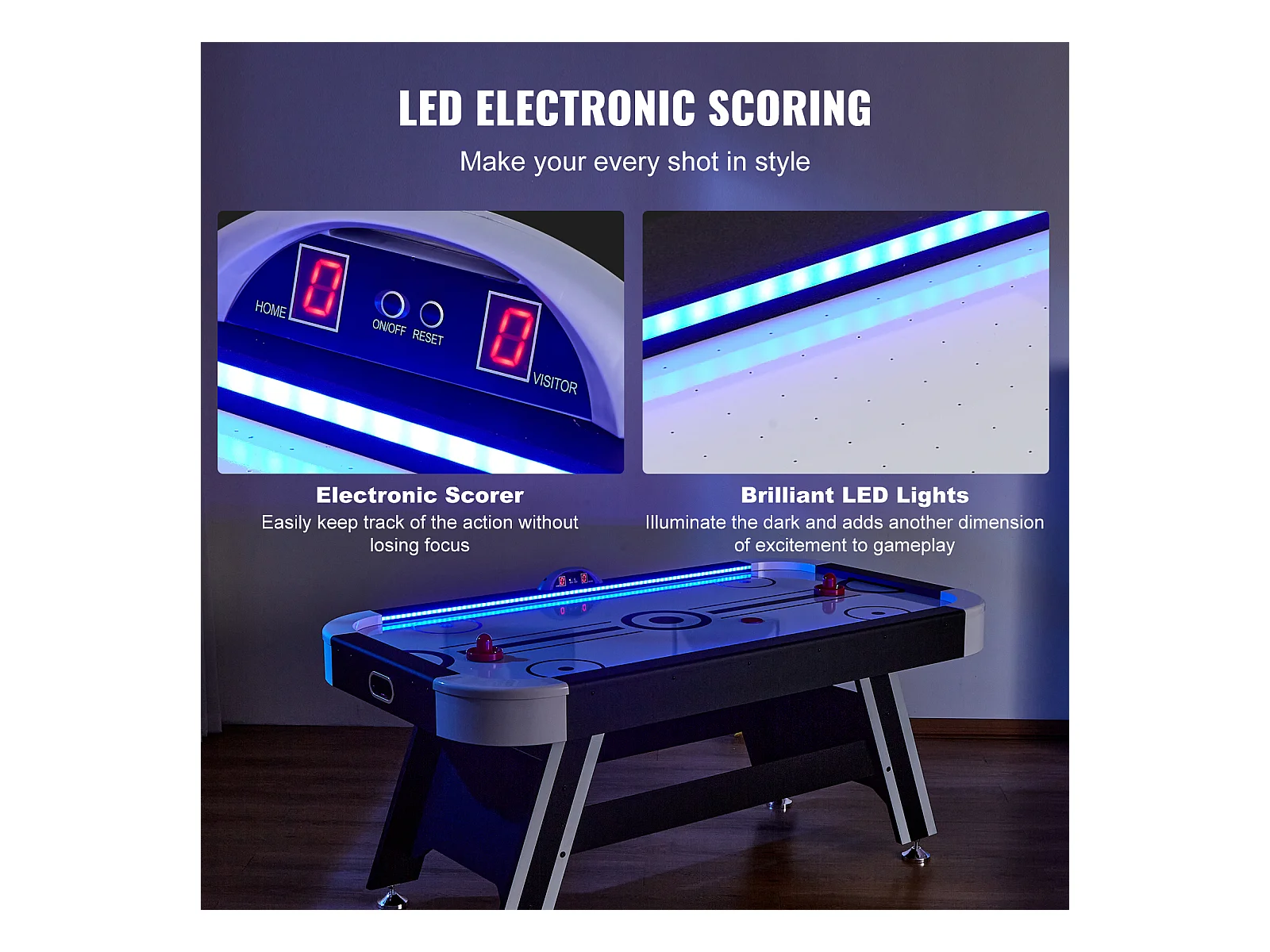 Table de Billard, SucceBuy Table d'Air Hockey 183 cm avec Score LED, Palets et Poussoirs Inclus