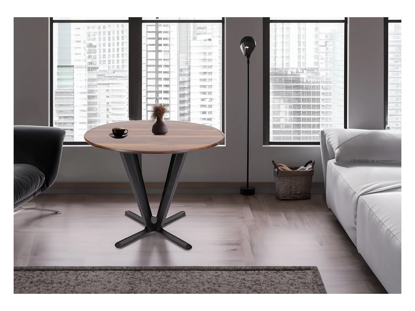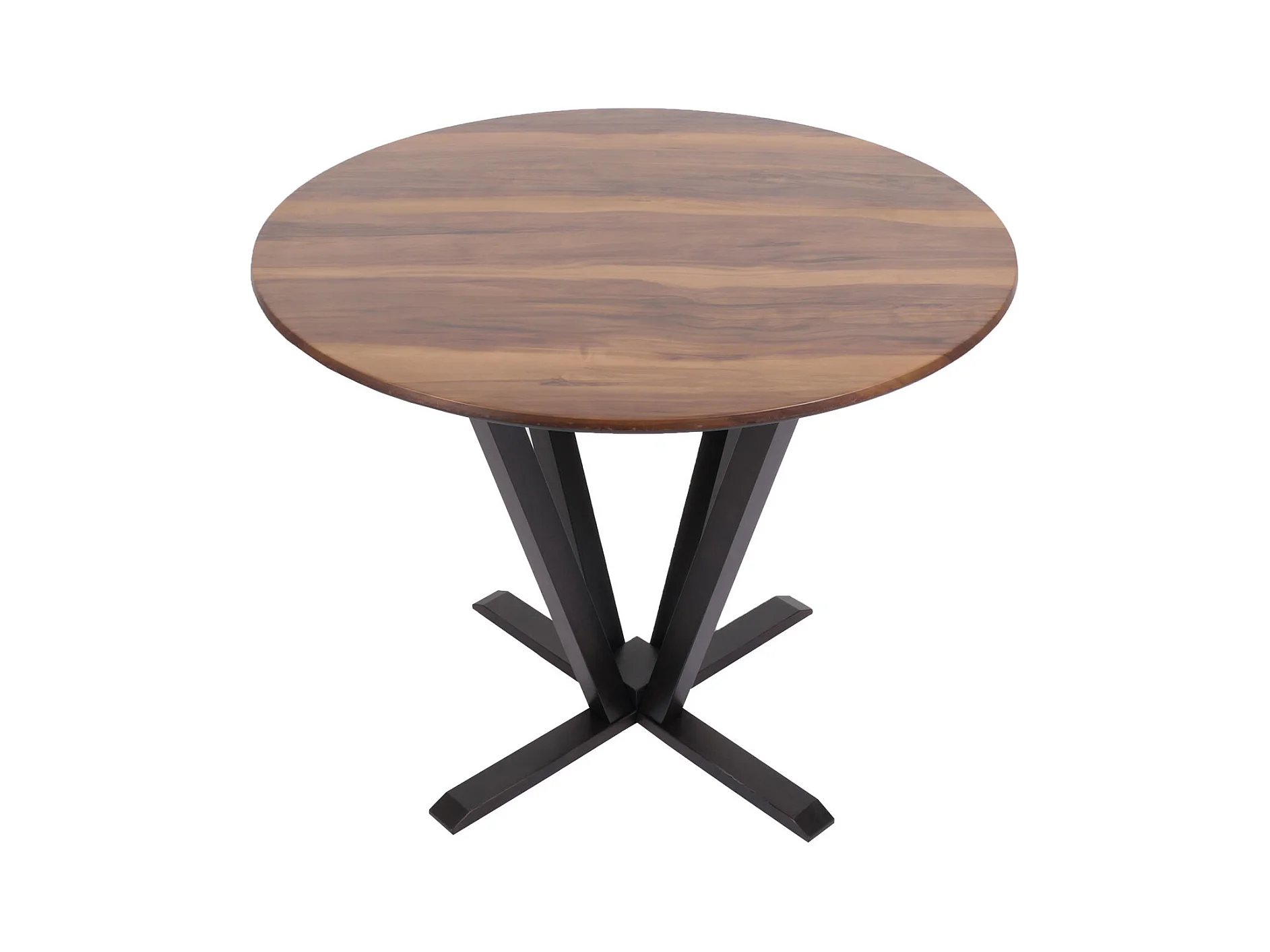 Table haute ronde bois massif et pieds métal noir Lava 70cm