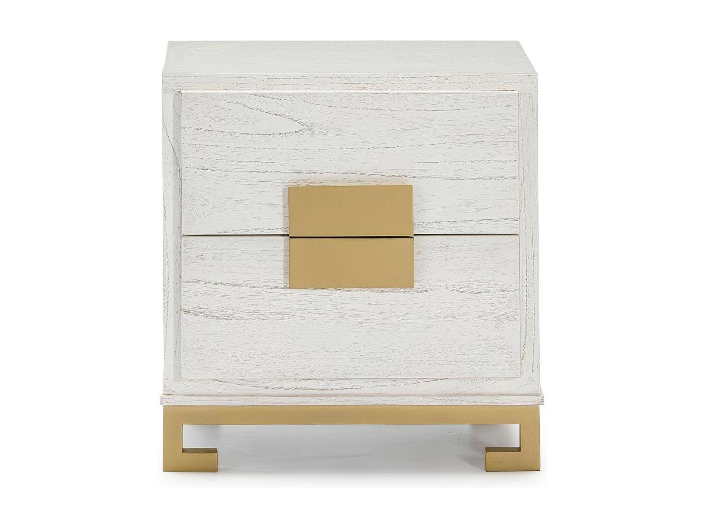 Table de chevet 2 tiroirs bois blanc et doré Hope