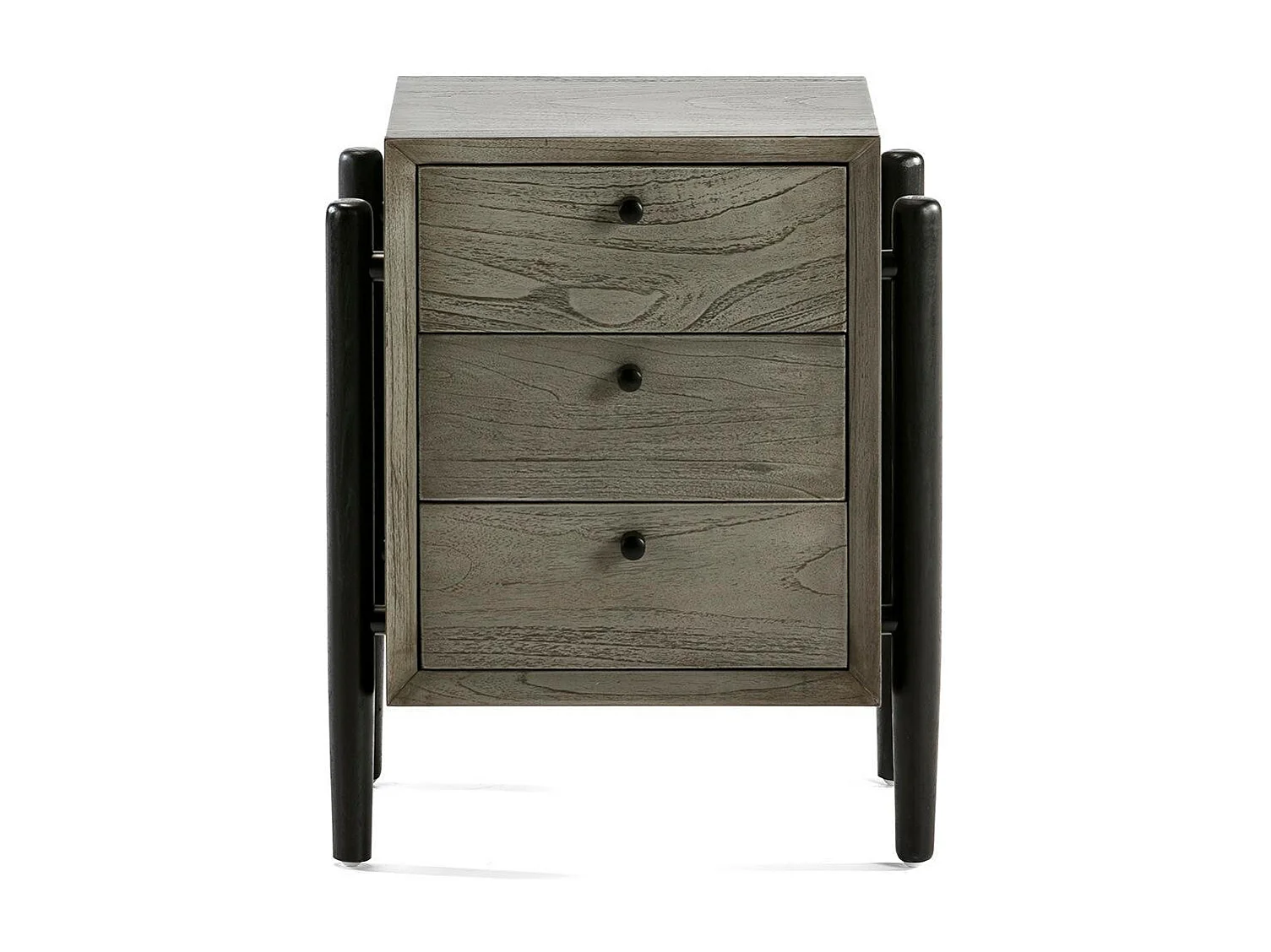 Table de chevet 3 tiroirs bois gris et noir Vazen