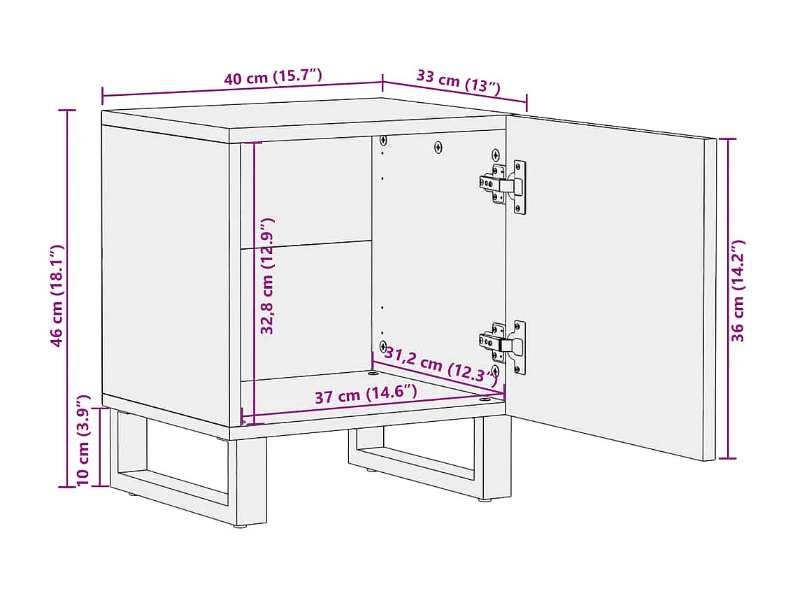 Table de chevet 40x33x46 cm Bois de manguier solide