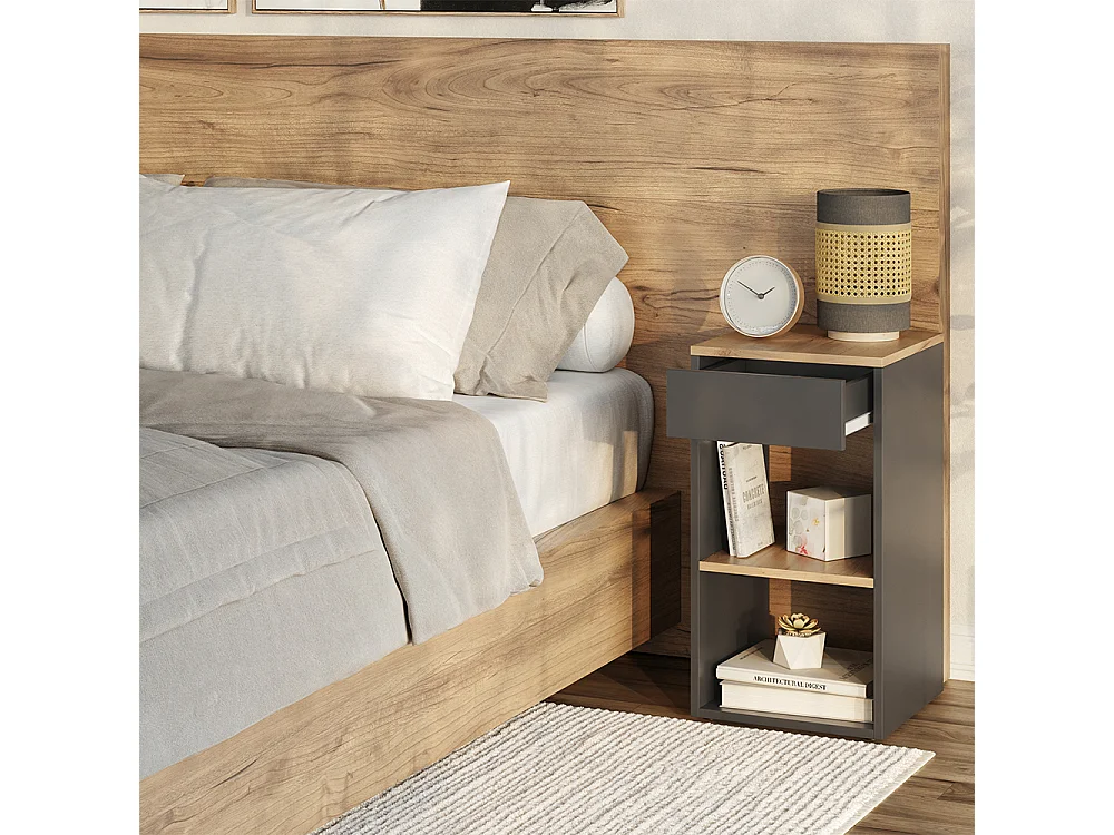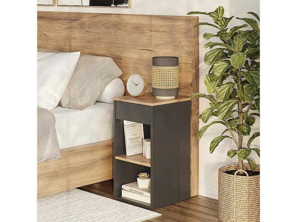 Table de chevet anthracite/chêne doré 35x35x65 dany