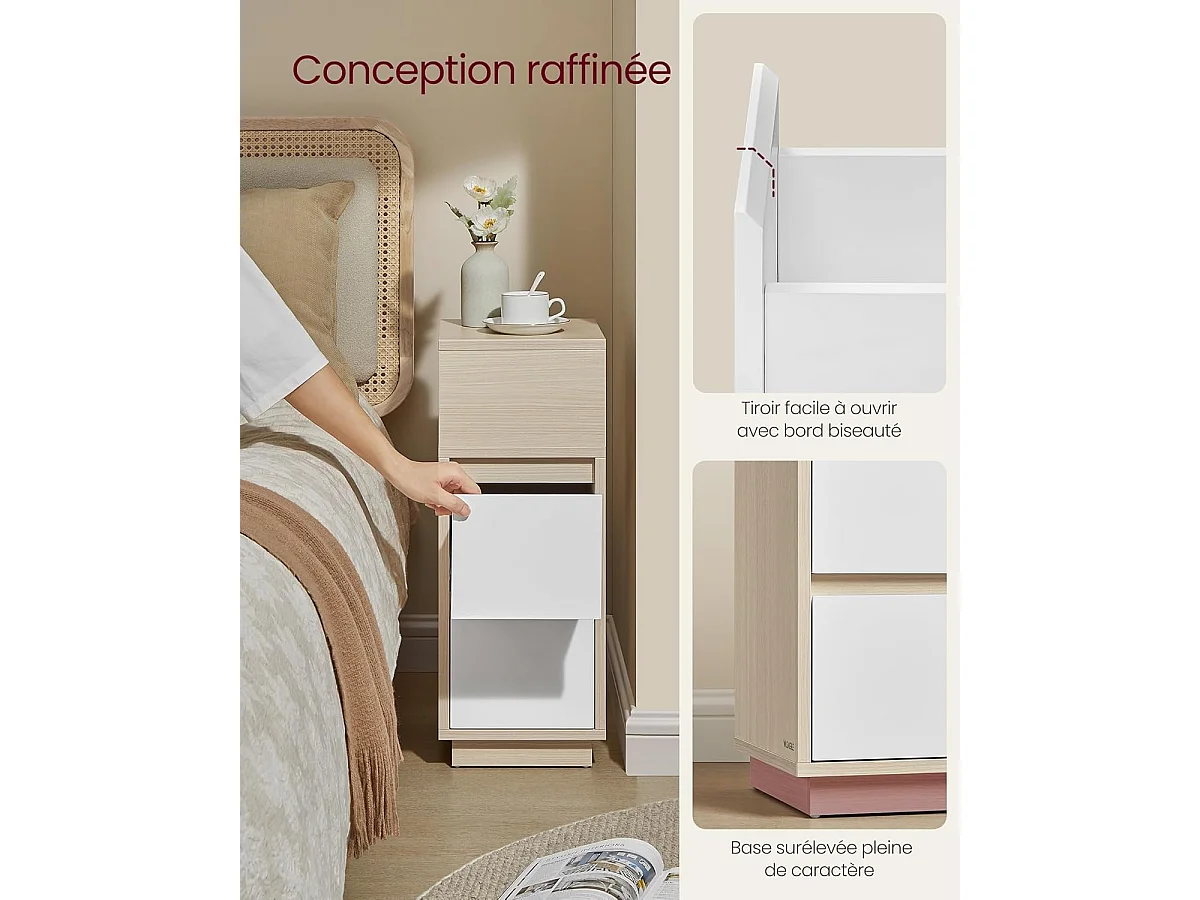 Table de chevet beige naturel et blanc nuage, collection Kailyn