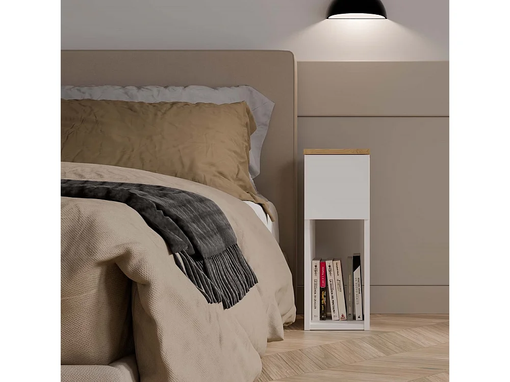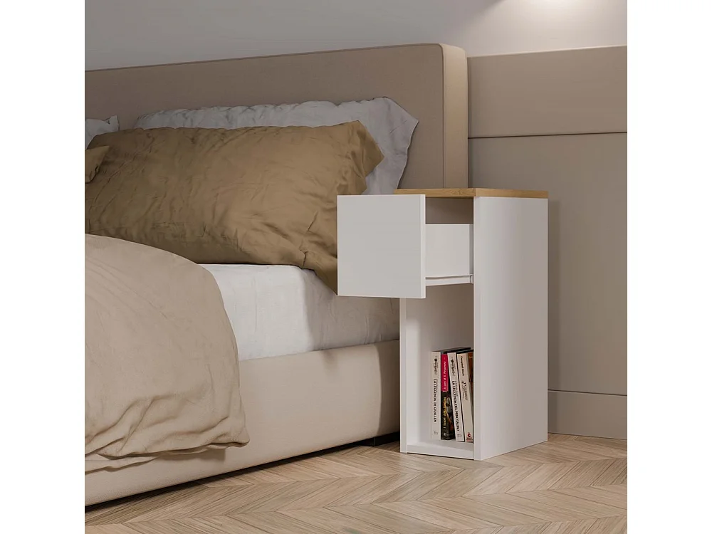 Table de chevet, blanc / chêne Artisan, 20 x 55 x 30 cm