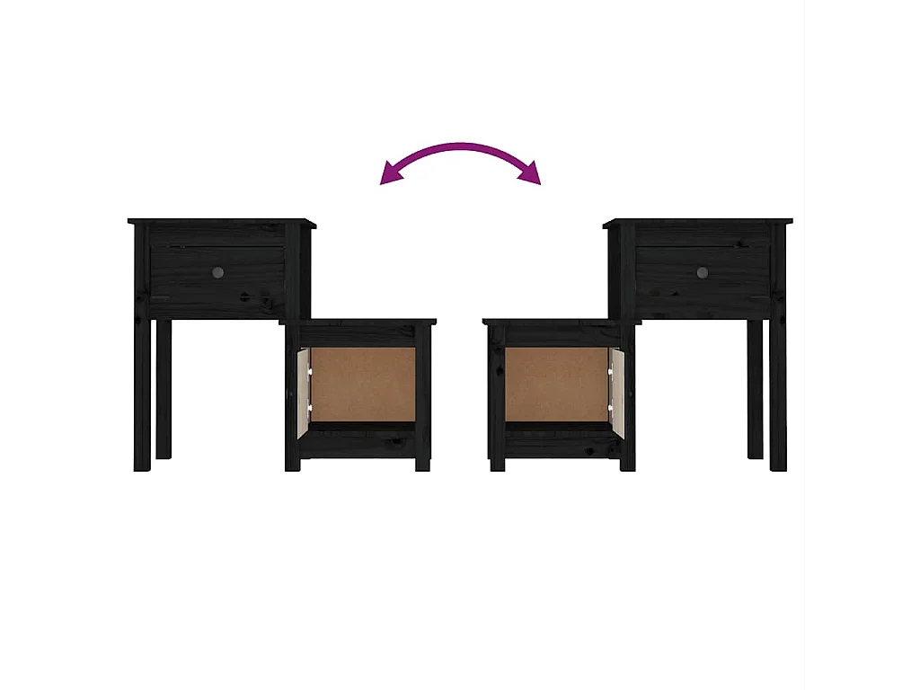 Table de chevet Noir 79,5x38x65,5 cm Bois de pin massif