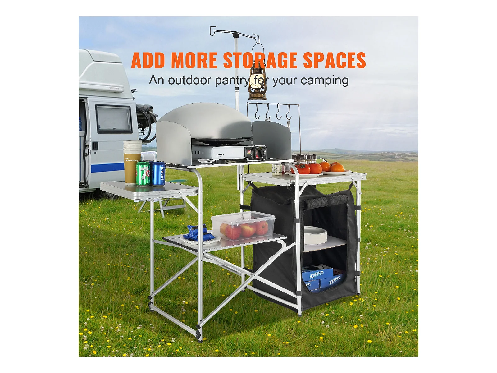 Table de Cuisine de Camping Portable SucceBuy, Table de Jardin, Station de Barbecue Pliante avec Pare-Brise