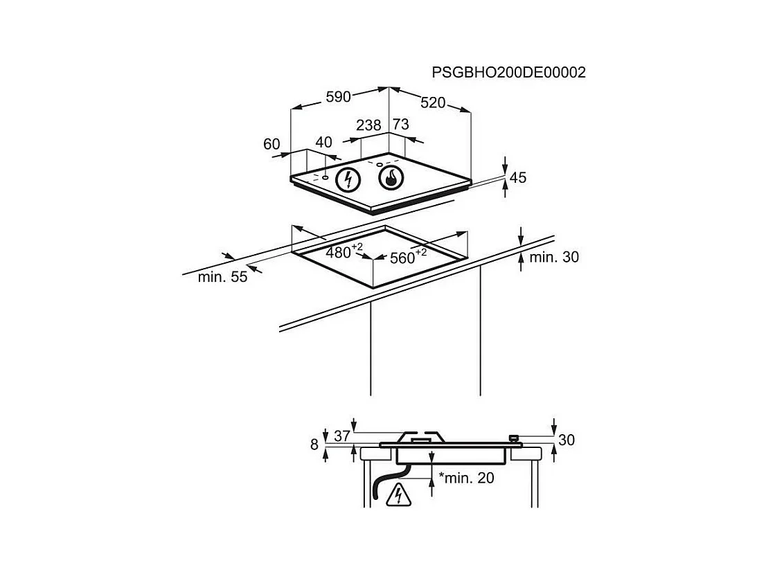 Plaque gaz ELECTROLUX 29cm, EGC 3322 NVK