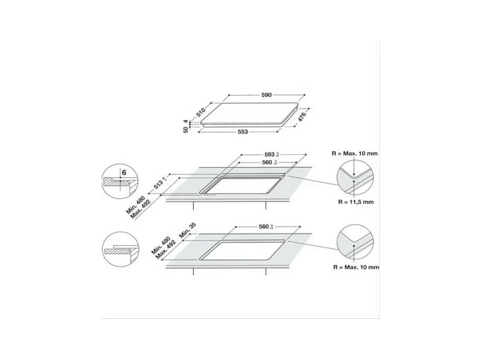 Plaque induction WHIRLPOOL 3600W 59cm, WSQ 1160 NE