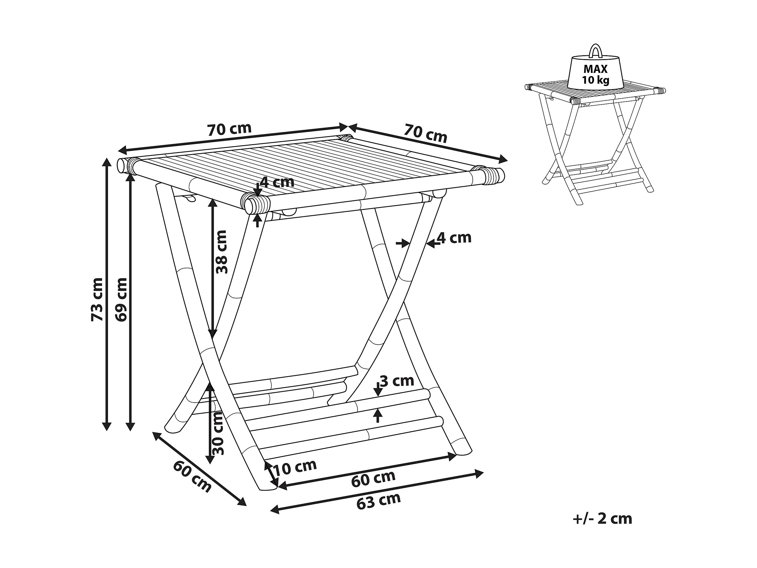 Table bistrot MOLISE Bambou Marron Pliant
