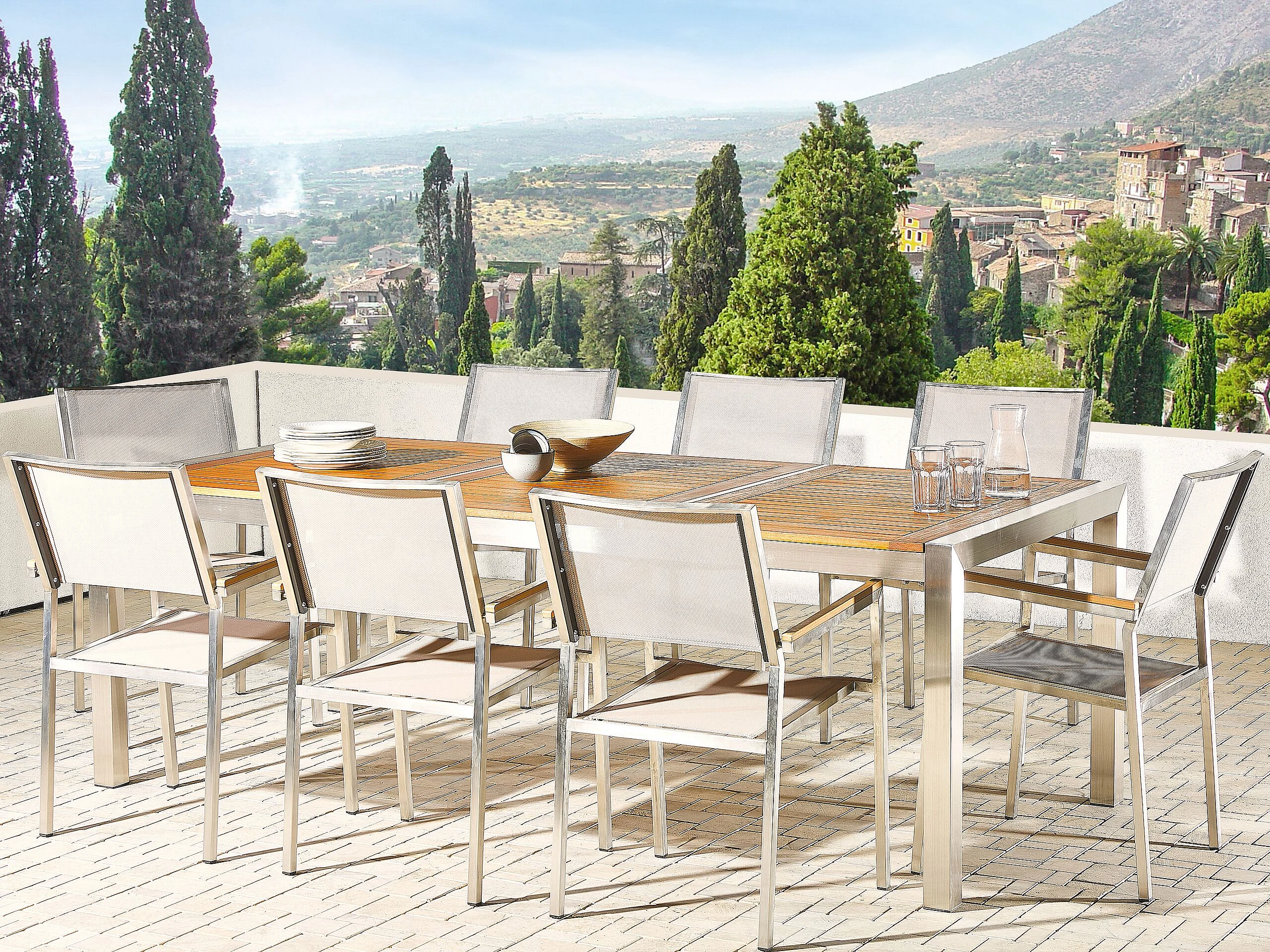 Salle à manger de jardin 8 places GROSSETO Bois d'eucalyptus Marron/beige