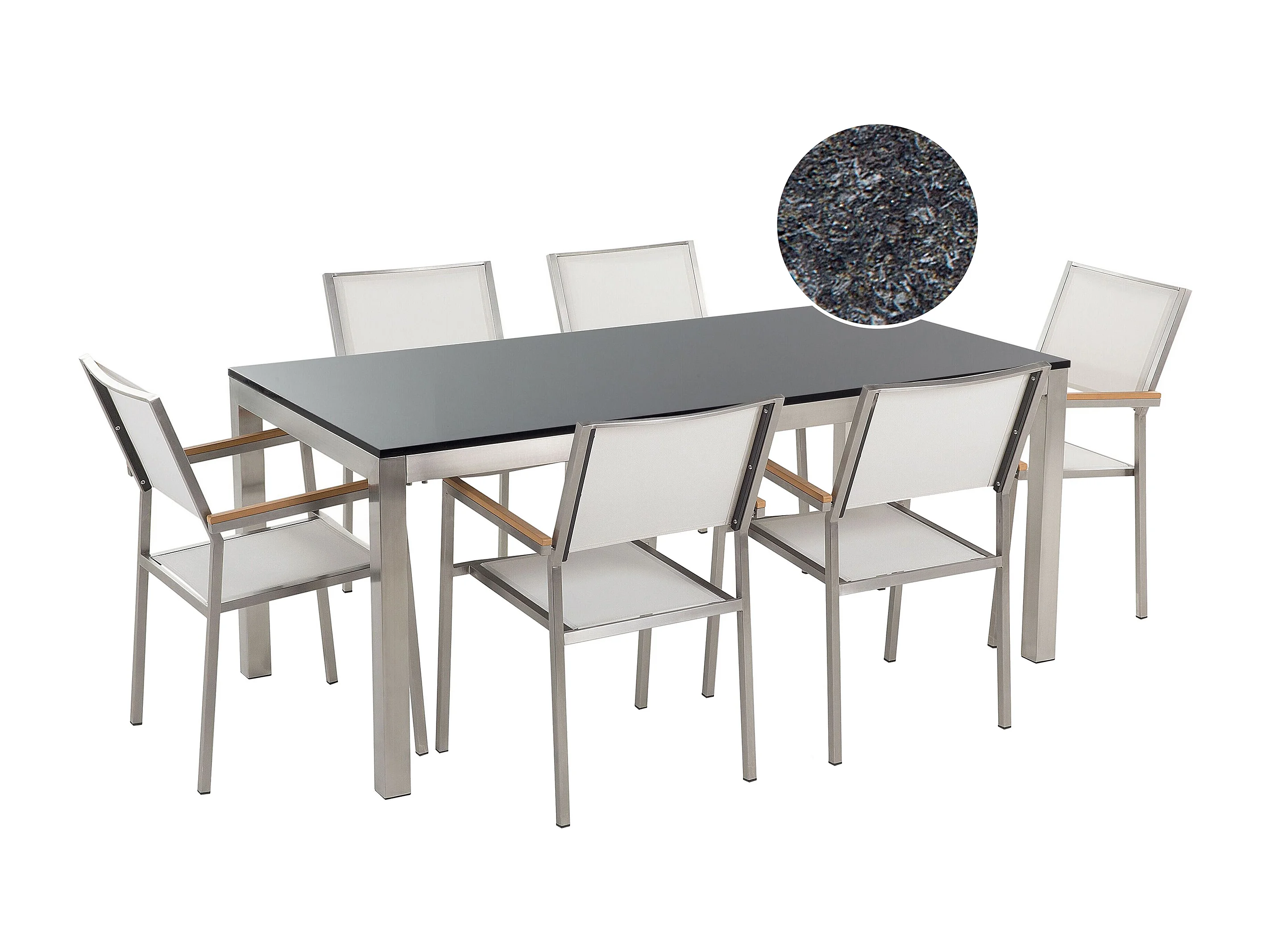 Salle à manger de jardin 6 places GROSSETO Granit Flammé Noir/blanc