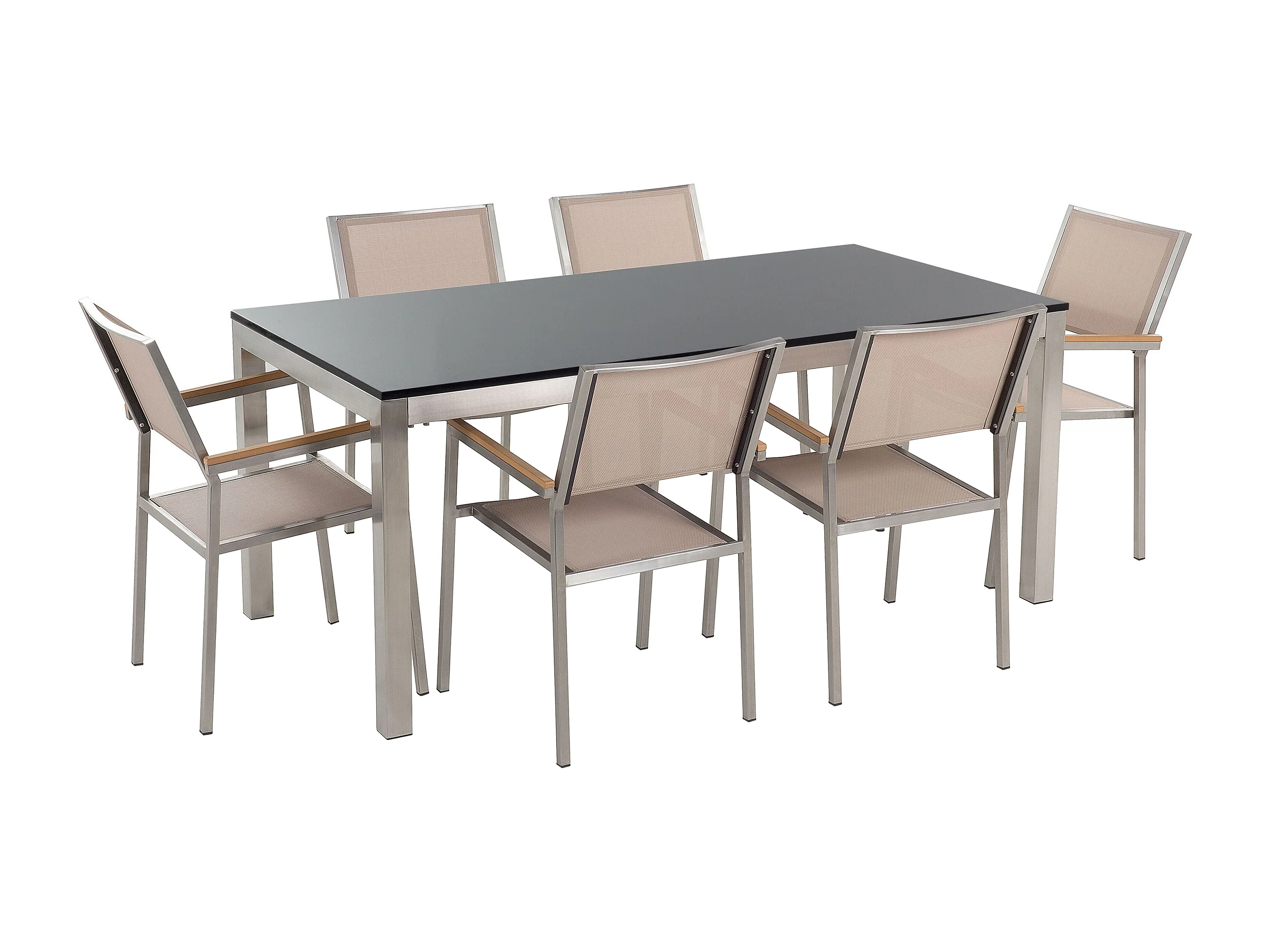 Salle à manger de jardin 6 places GROSSETO Granit Poli Noir/beige