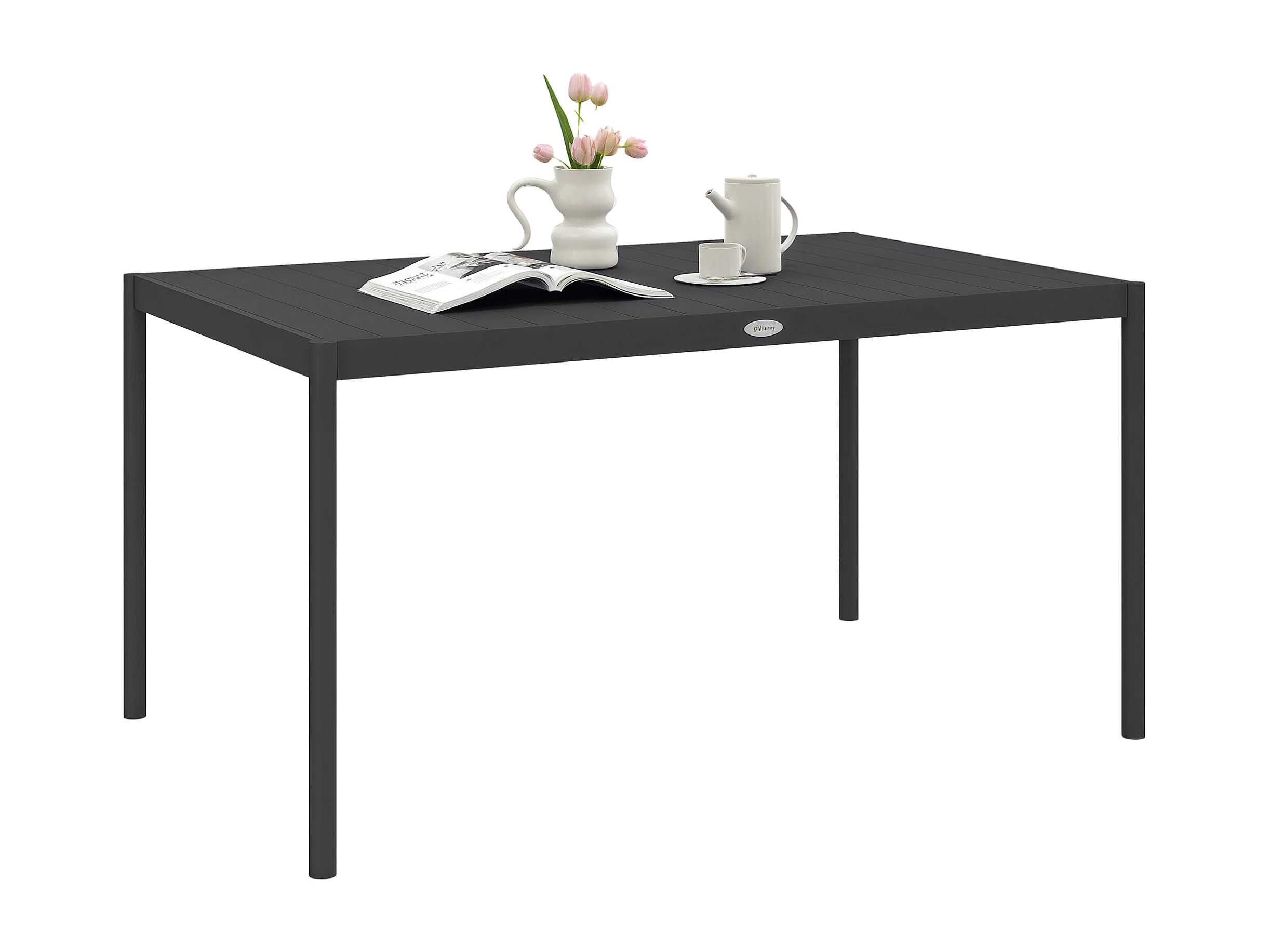 Table de jardin rectangulaire 6 personnes plateau lattes aspect bois alu gris