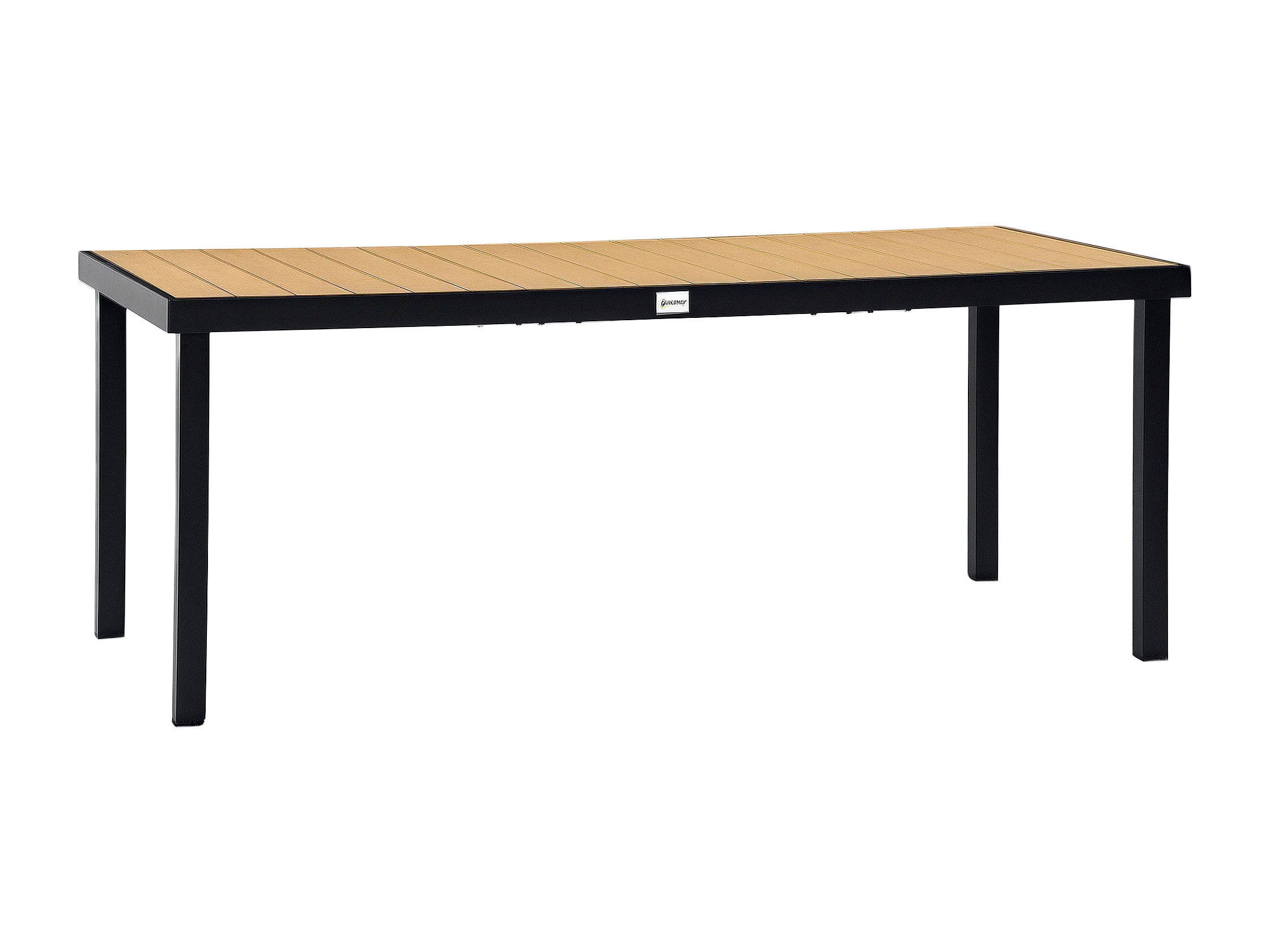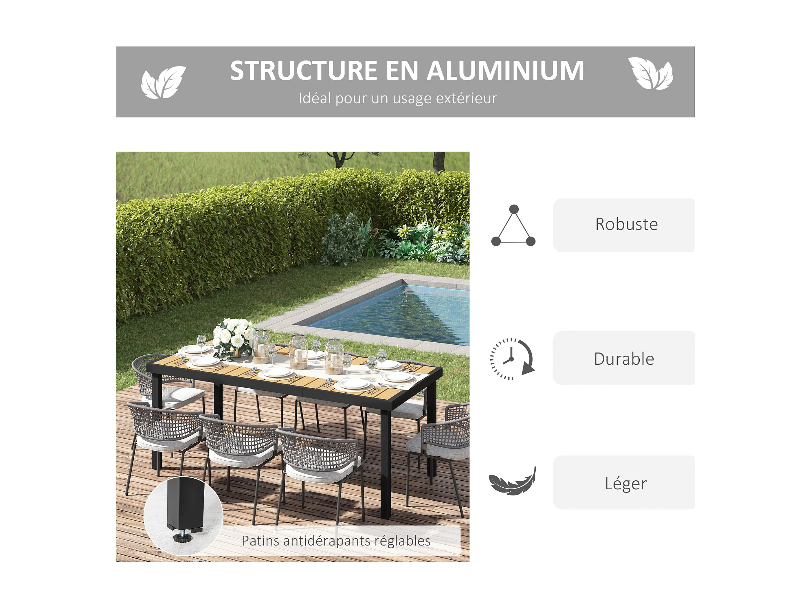 Table de jardin rectangulaire pour 8 personnes en aluminium plateau PE à lattes aspect bois dim. 190L x 90l x 74H cm noir