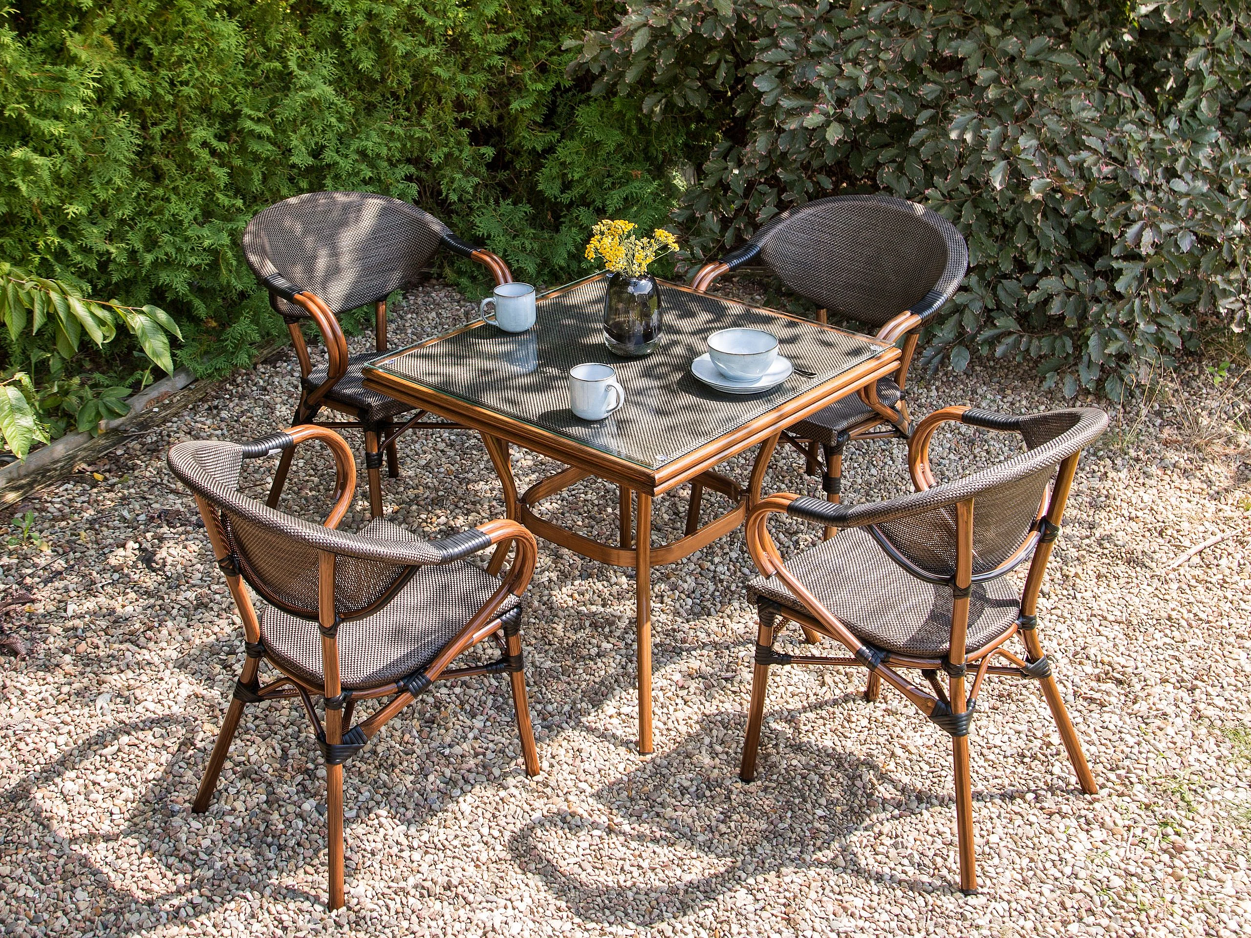 Table de salle à manger de jardin CASPRI II 80 cm 80 cm Verre Gris
