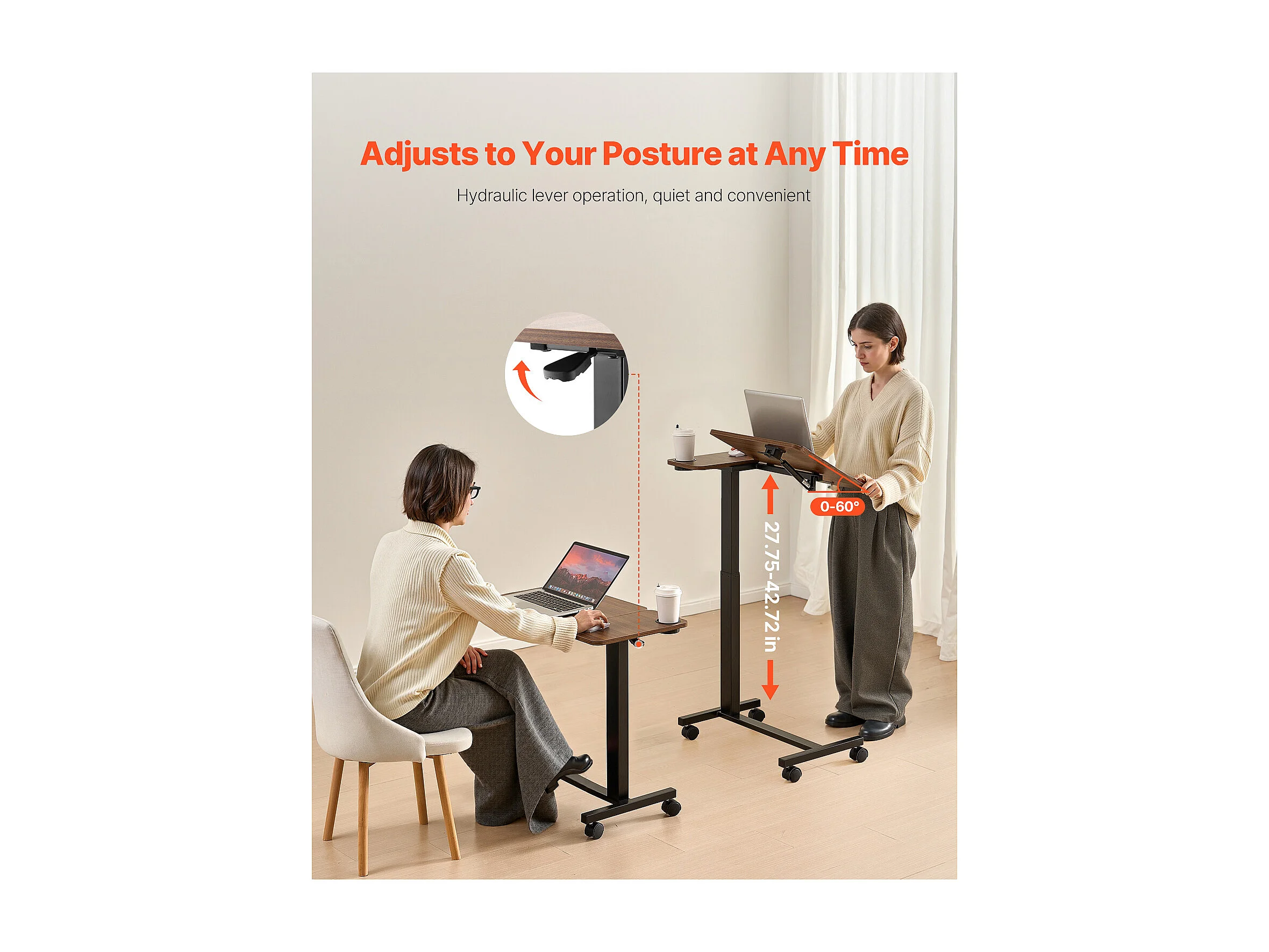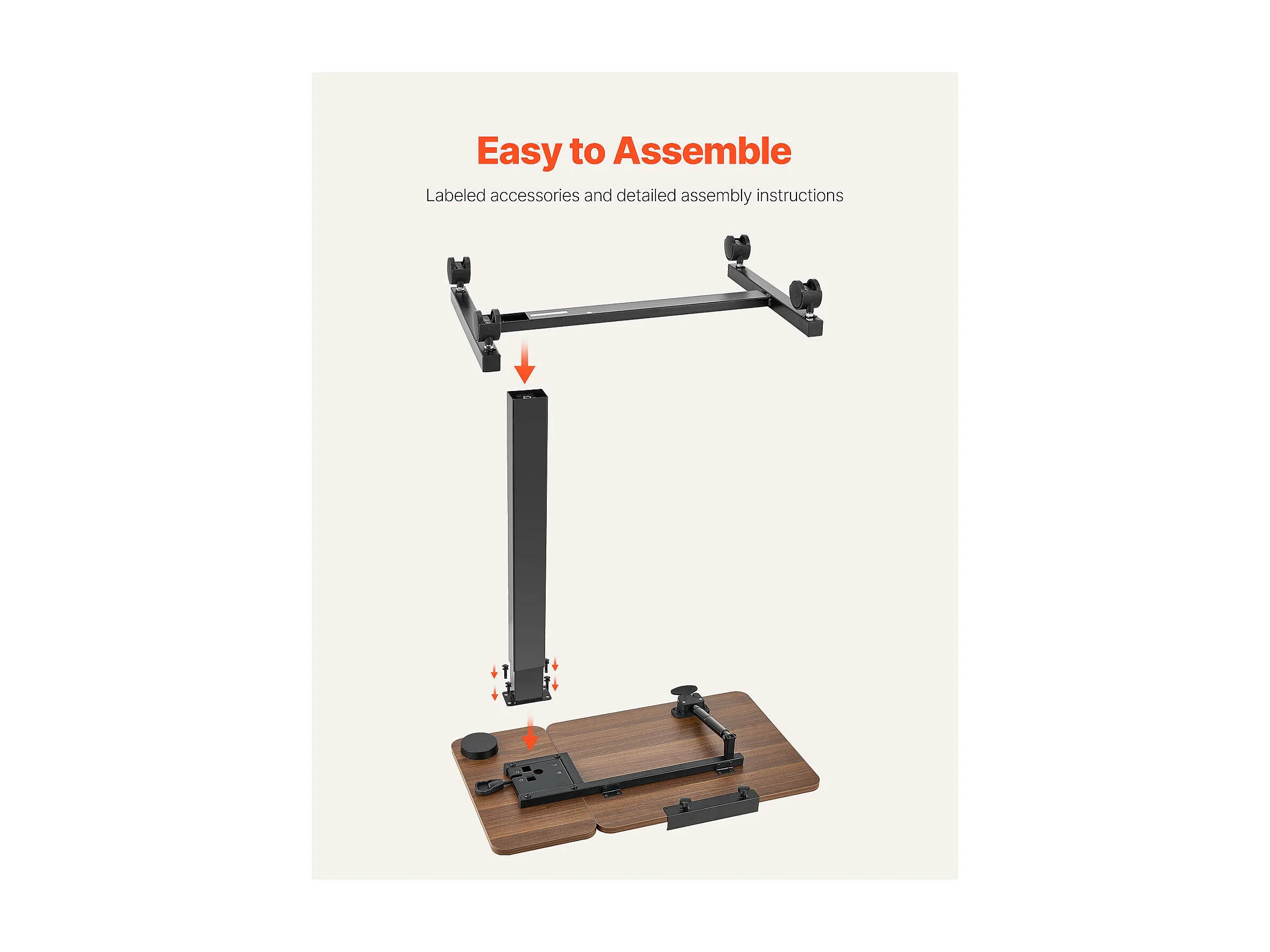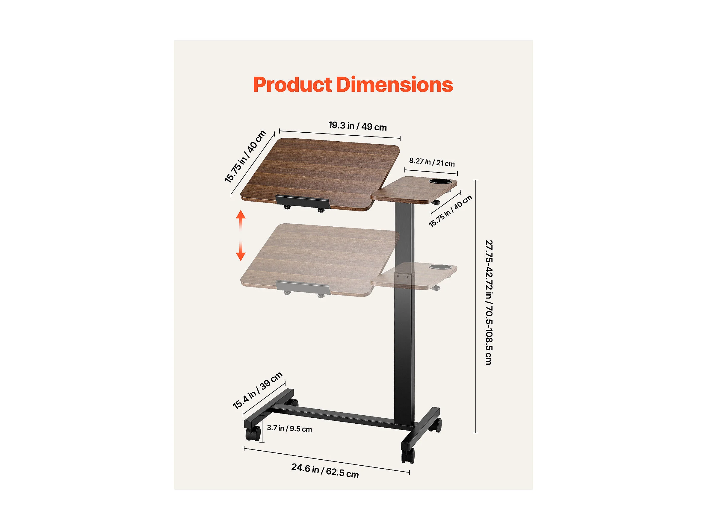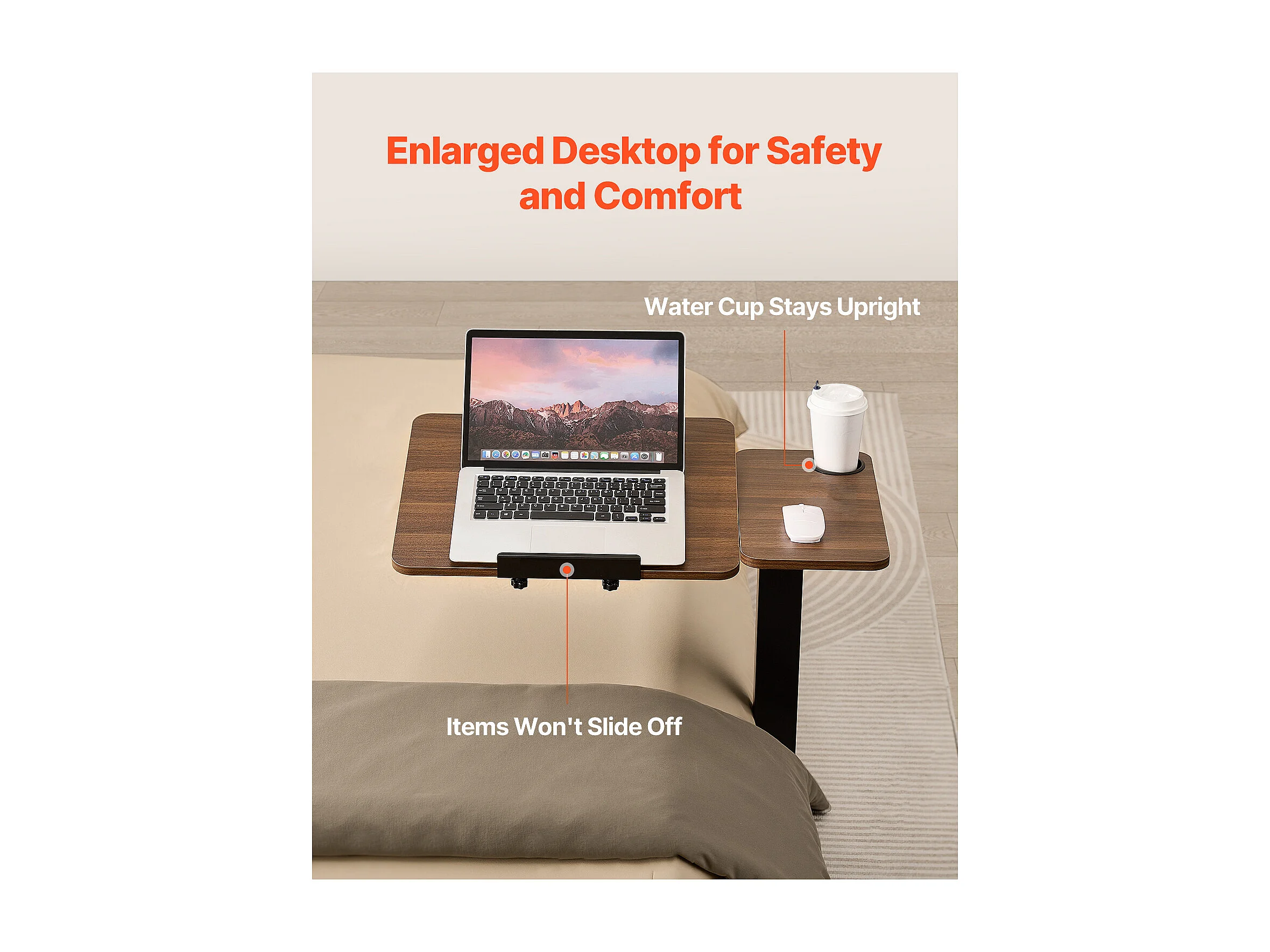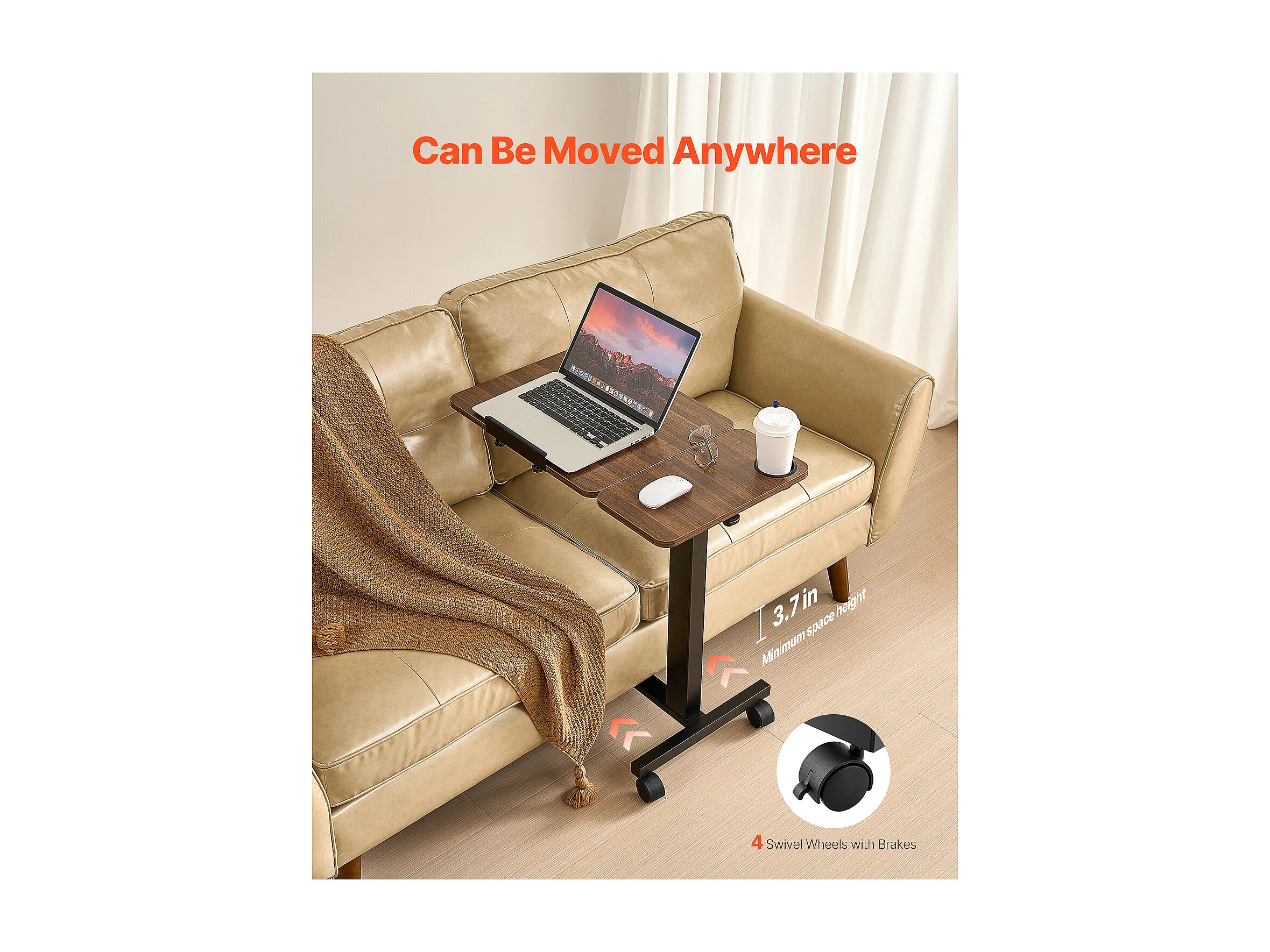 Table de Lit Mobile SucceBuy, Table d'Appoint à 4 Roulettes, Plateau Rabattable, Hauteur Réglable, Porte-Gobelet, pour Maison et Bureau, Bois et Noir