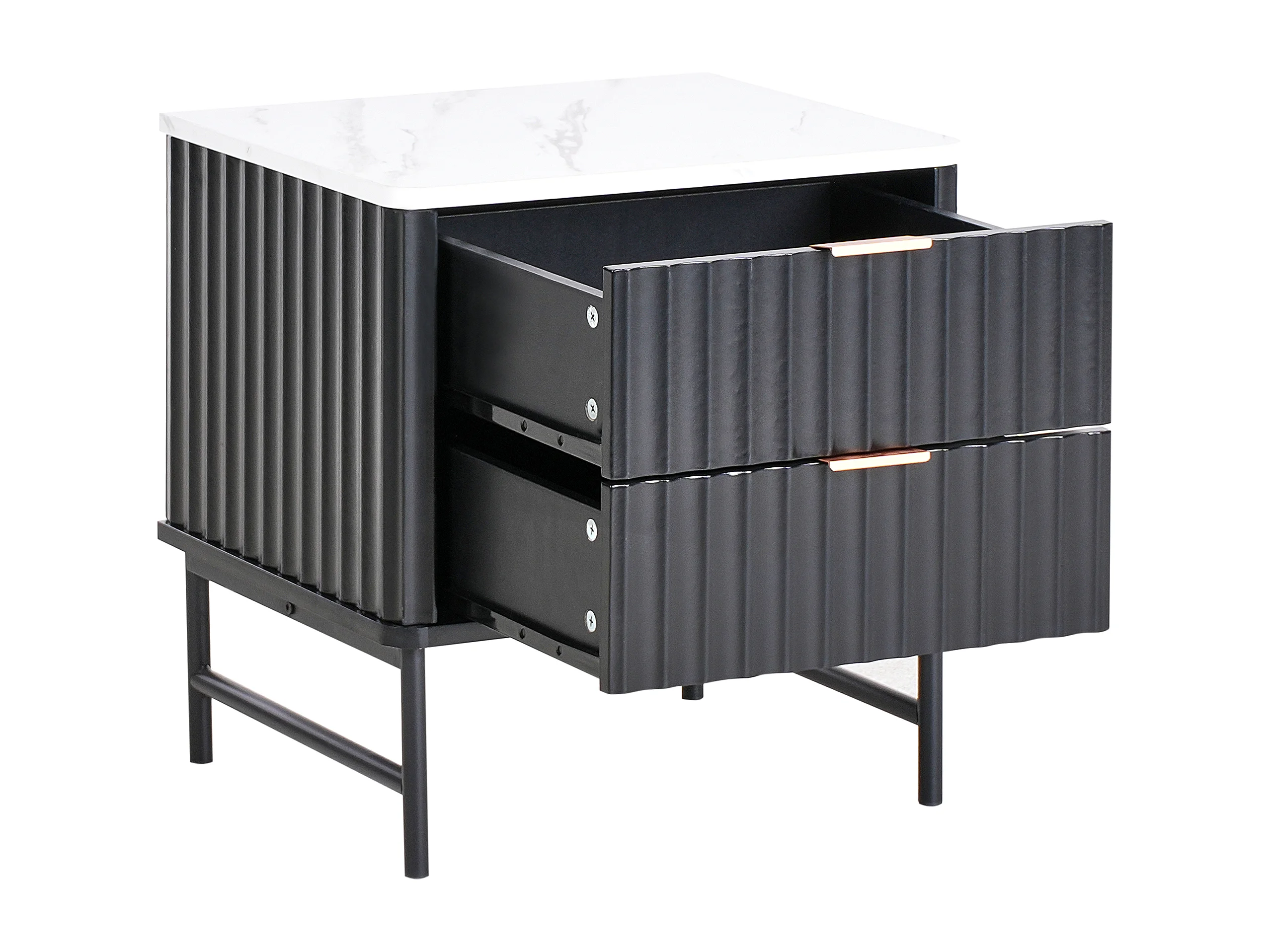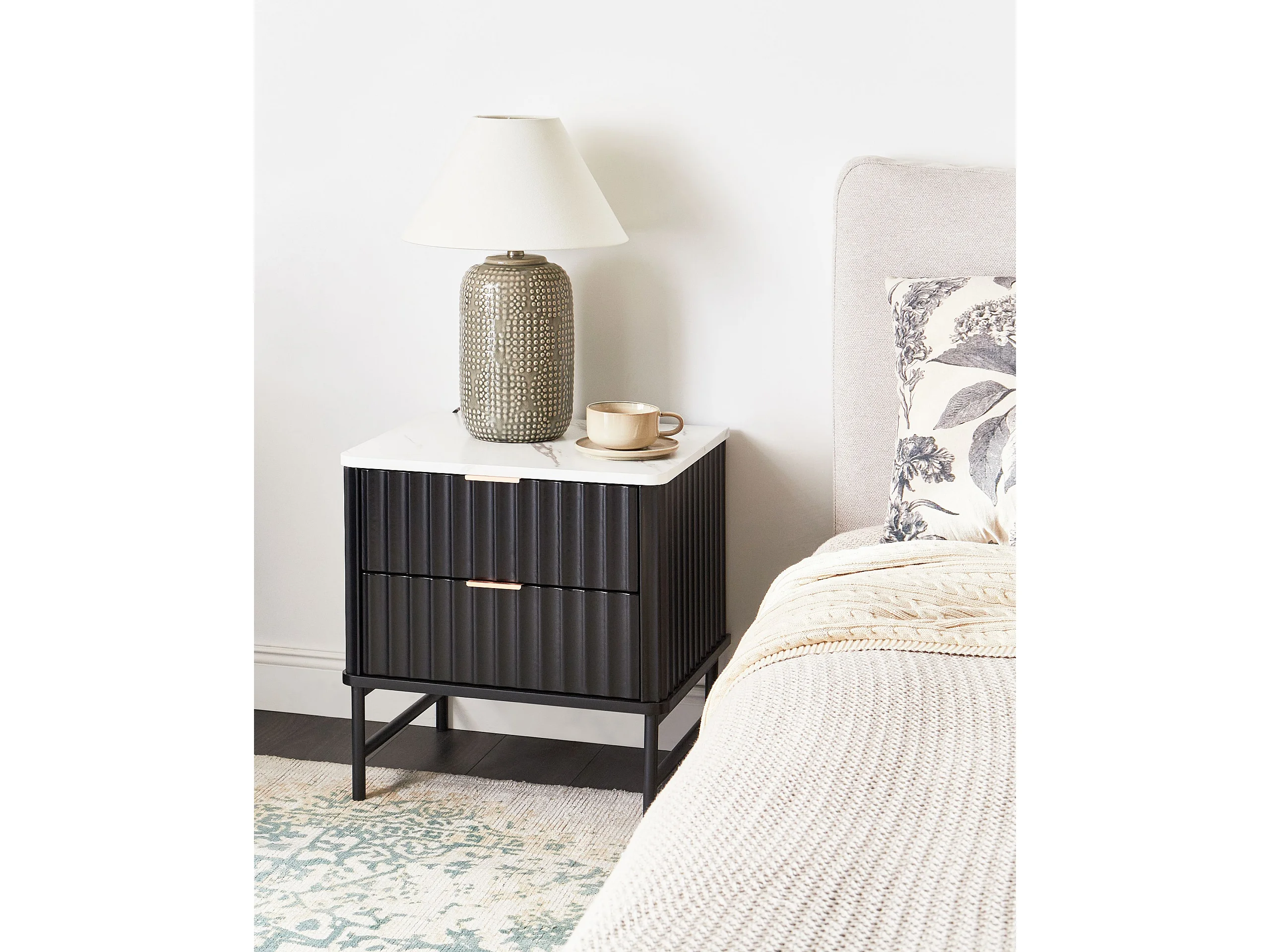 Table de nuit à 2 tiroirs GLASTONBURY Marbre/noir